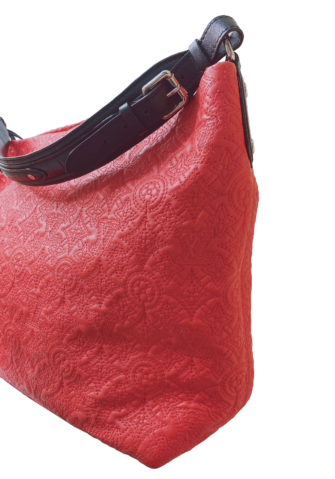This stunning shoulder bag is beautifully crafted of antique styled leather in dark rose with signature Louise Vuitton monogram stitching. This bag has a looping black leather shoulder strap and aged silver hardware. The top is open to a burgundy suede interior with a zipper and patch pockets. This hobo bag is spacious enough for everyday essentials with the luxury and style only from Louis Vuitton!