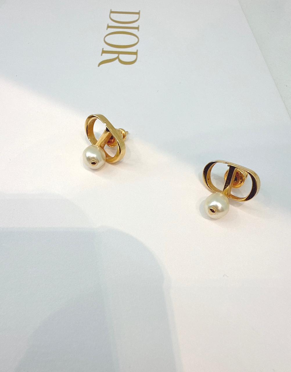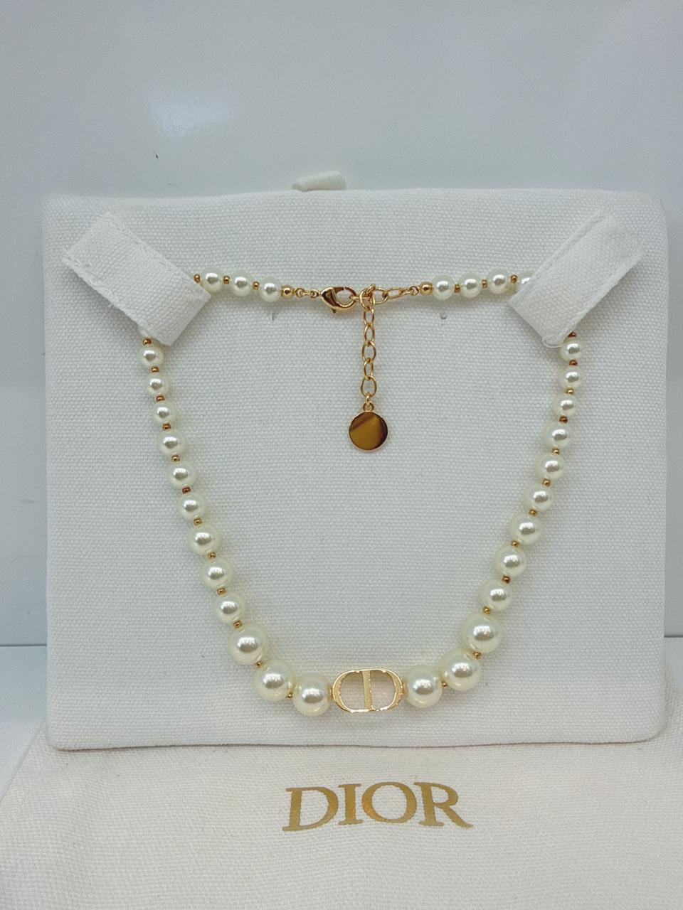 GOLD TONE FAUX PEARL 30 MONTAIGNE SHORT CD NECKLACE BRACELET AND PETIT CD EARRINGS SET