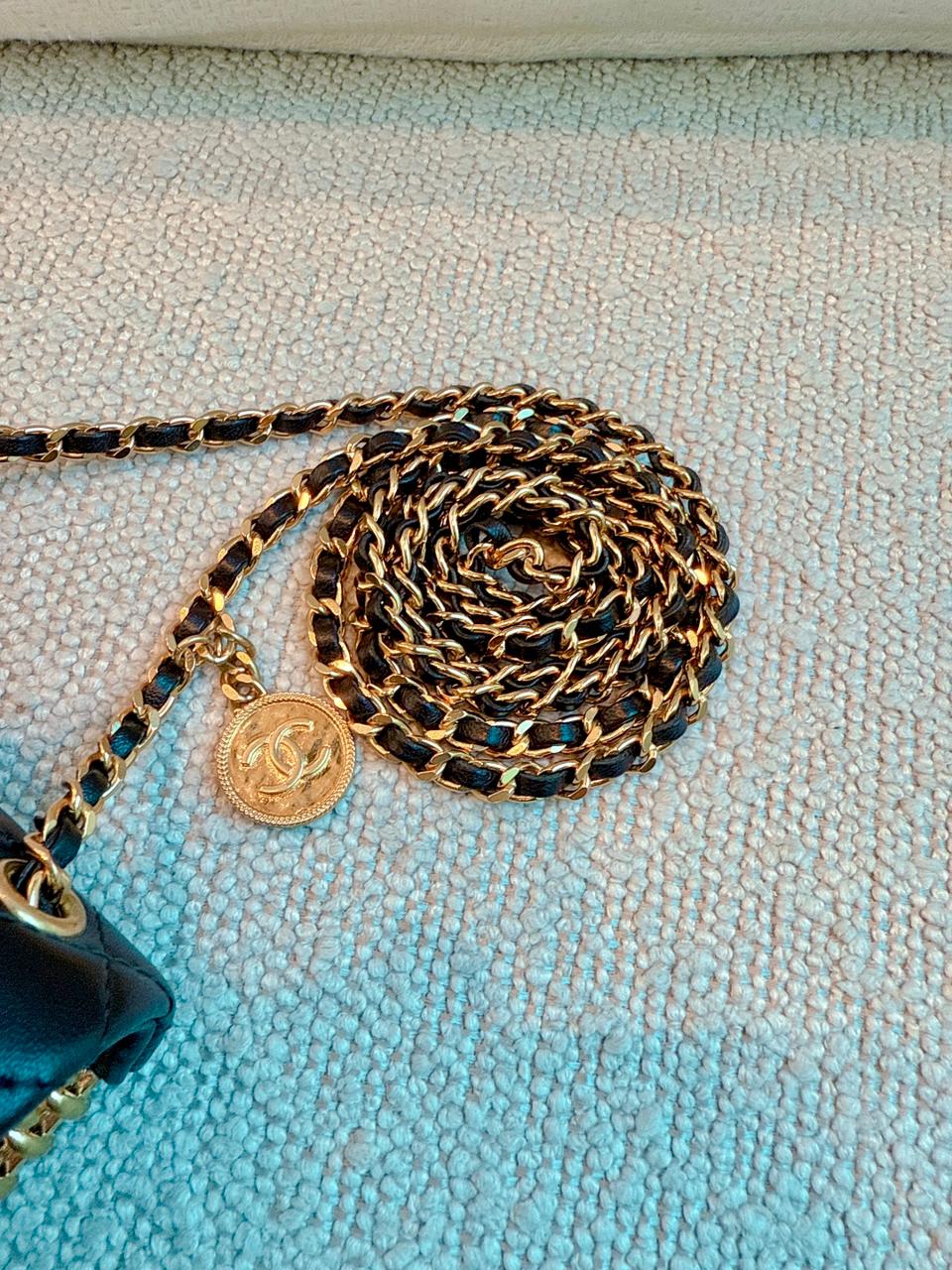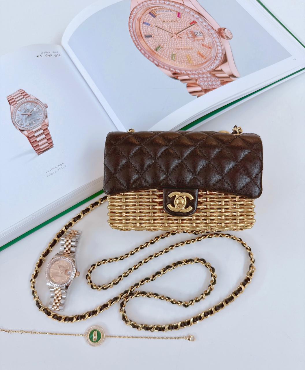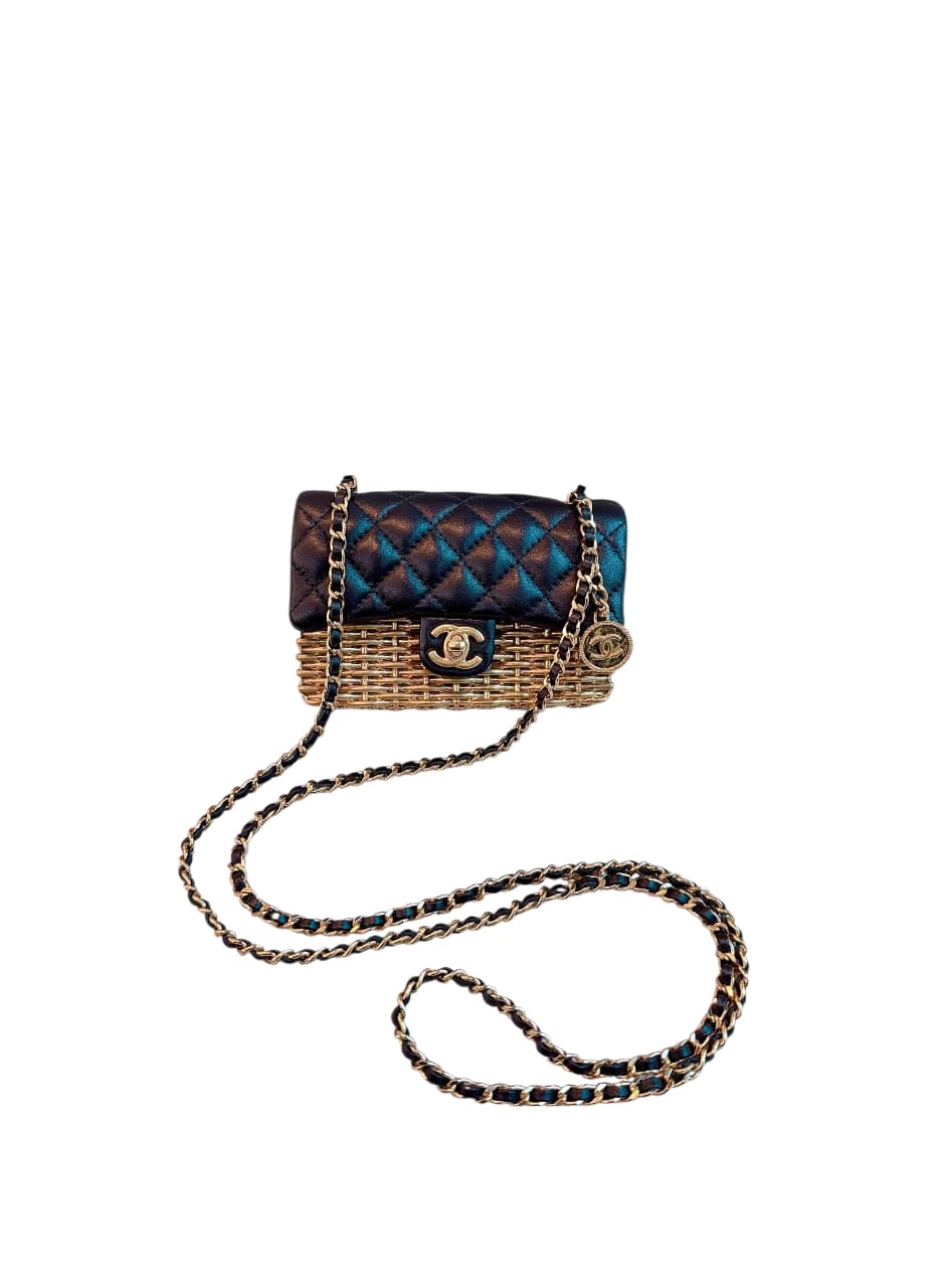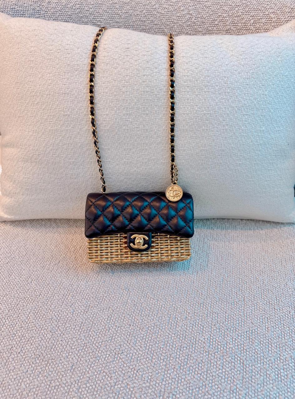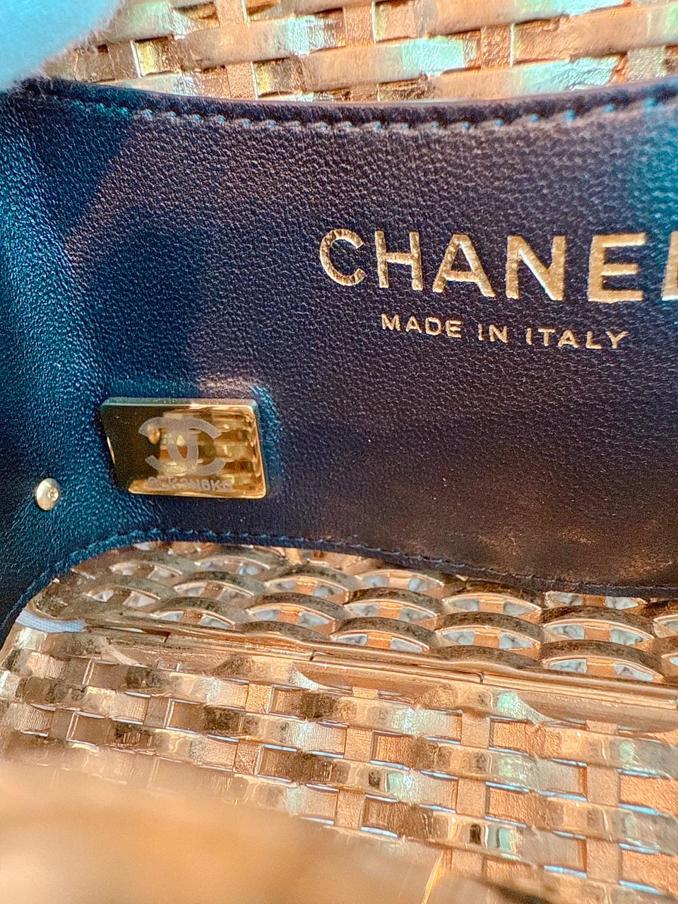 23C BLACK/GOLD WOVEN METAL LAMBSKIN SMALL FLAP EVENING BAG