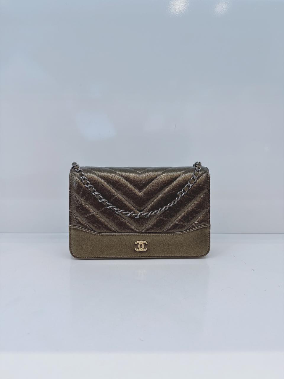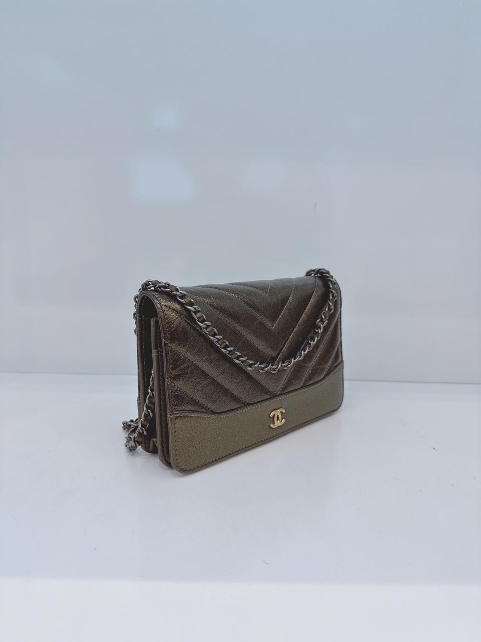 AGED CALFSKIN CHEVRON QUILTED GABRIELLE WALLET ON CHAIN