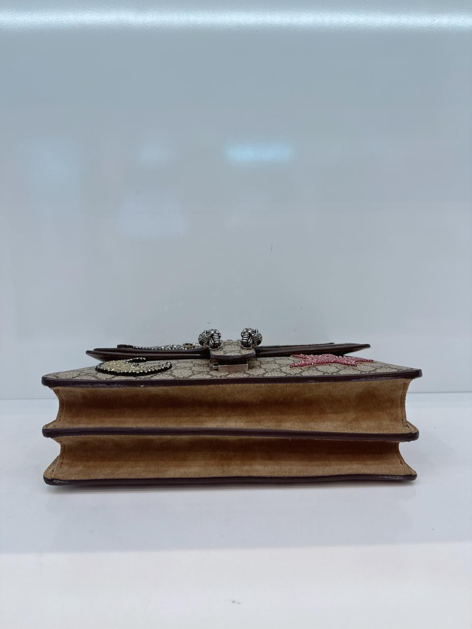 BEIGE BROWN GG SUPREME CANVAS AND SUEDE MEDIUM DIONYSUS EMBELLISHED SHOULDER BAG