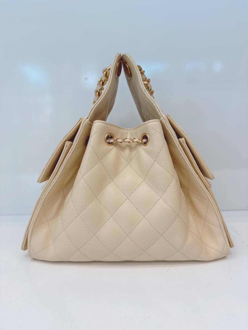 BEIGE GRAINED CALFSKIN LEATHER CHANEL 25 SMALL HANDBAG