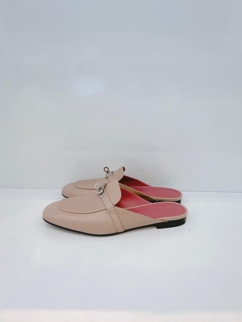 BEIGE NUDE GOATSKIN LEATHER OZ MULE SANDALS 40.5