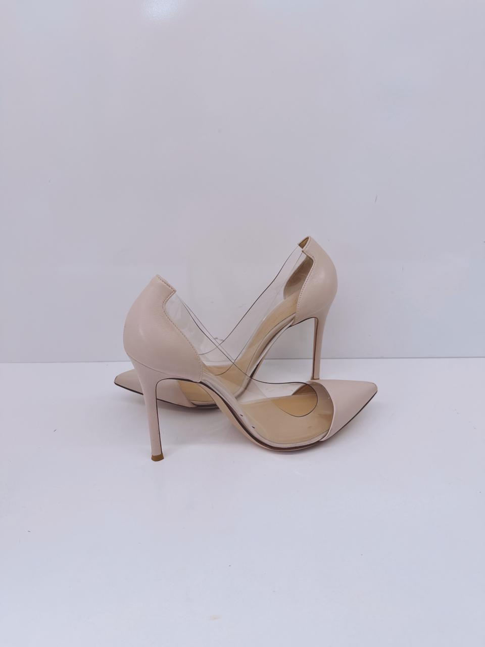 LIGHT PINK LEATHER AND PVC PLEXI POINTED TOE PUMPS 38.5