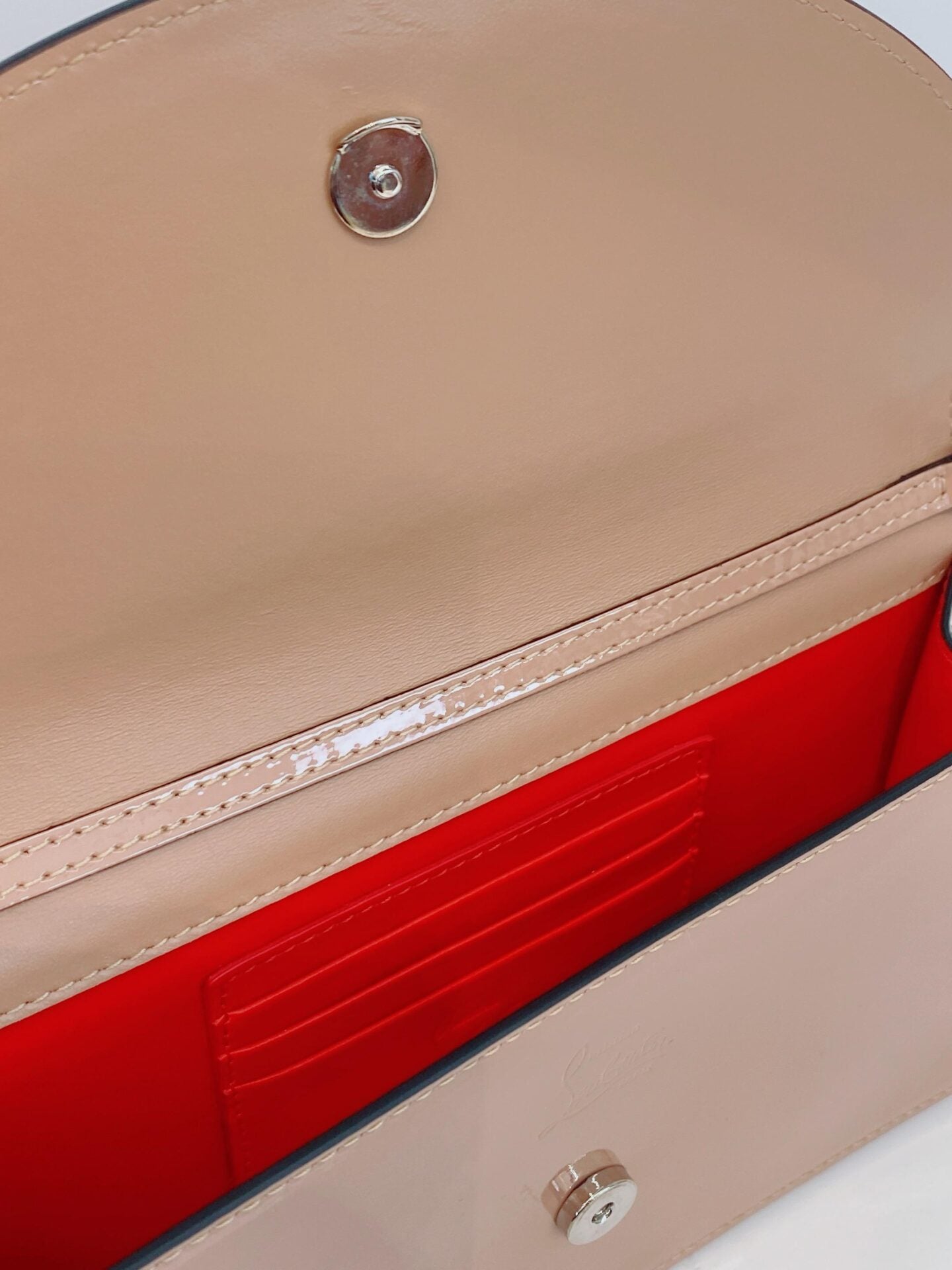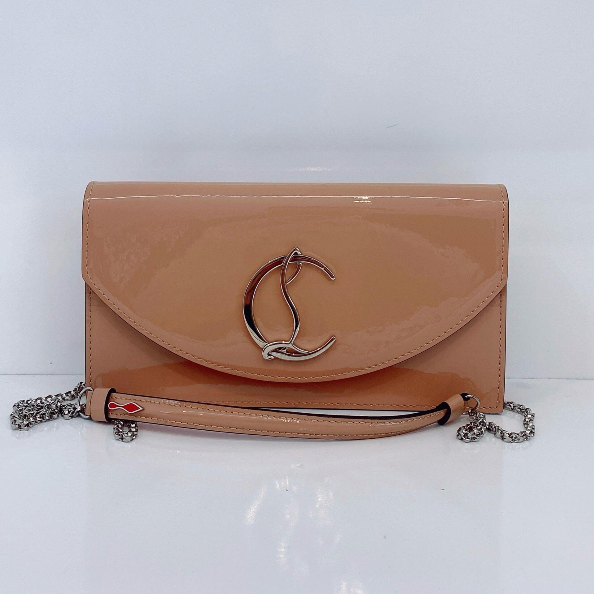 BEIGE PATENT LEATHER LOUBI 54 CHAIN CLUTCH