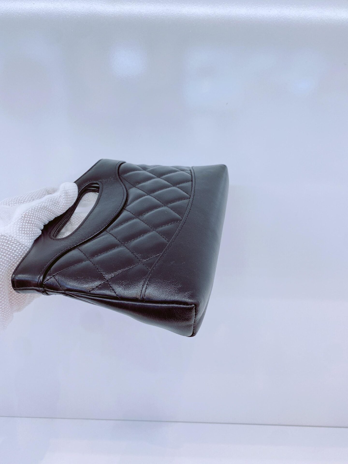BLACK AGED CALFSKIN LEATHER NANO 31 MINI SHOPPING BAG GOLD HARDWARE