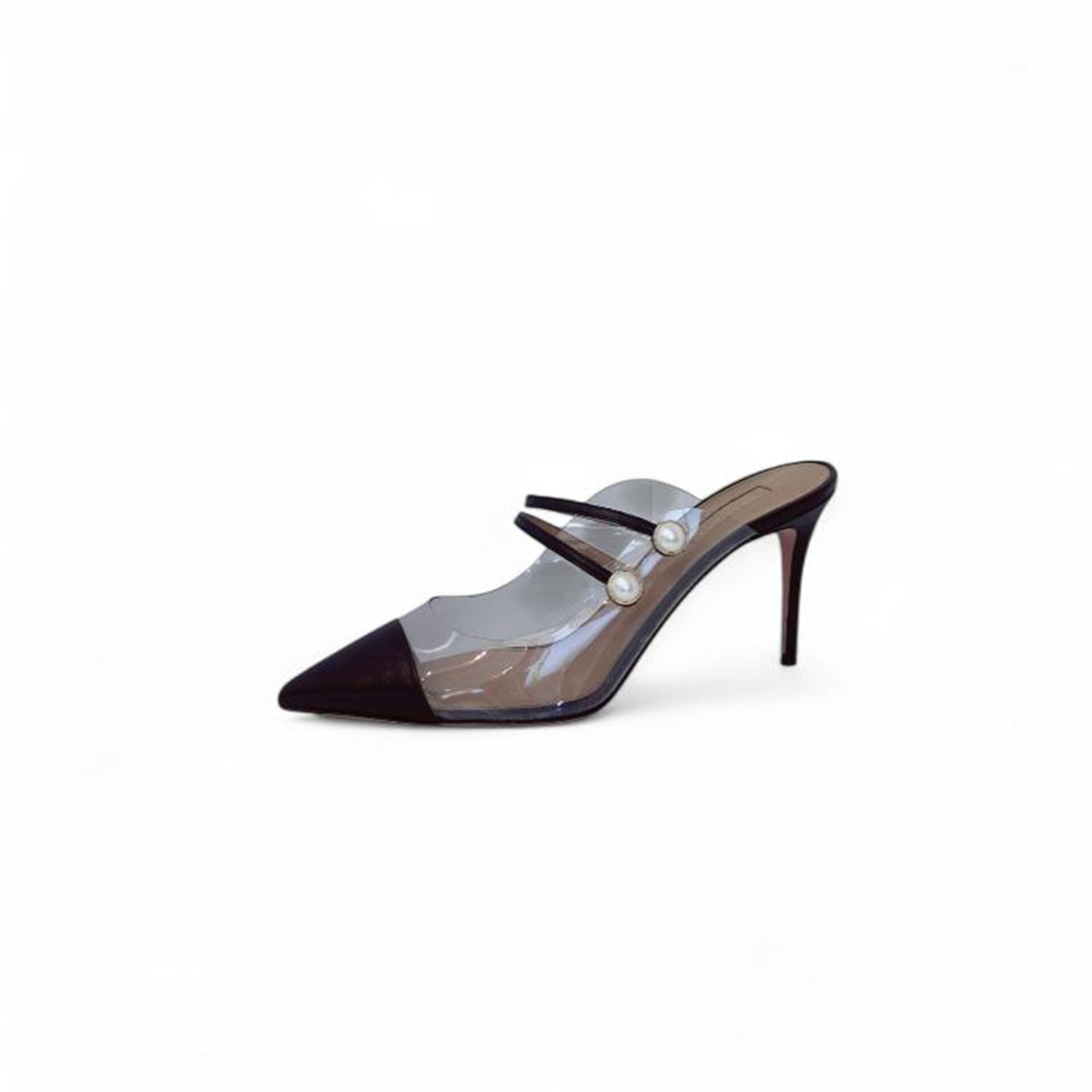 BLACK FAUX PEARL EMBELLISHED MULES 40.5