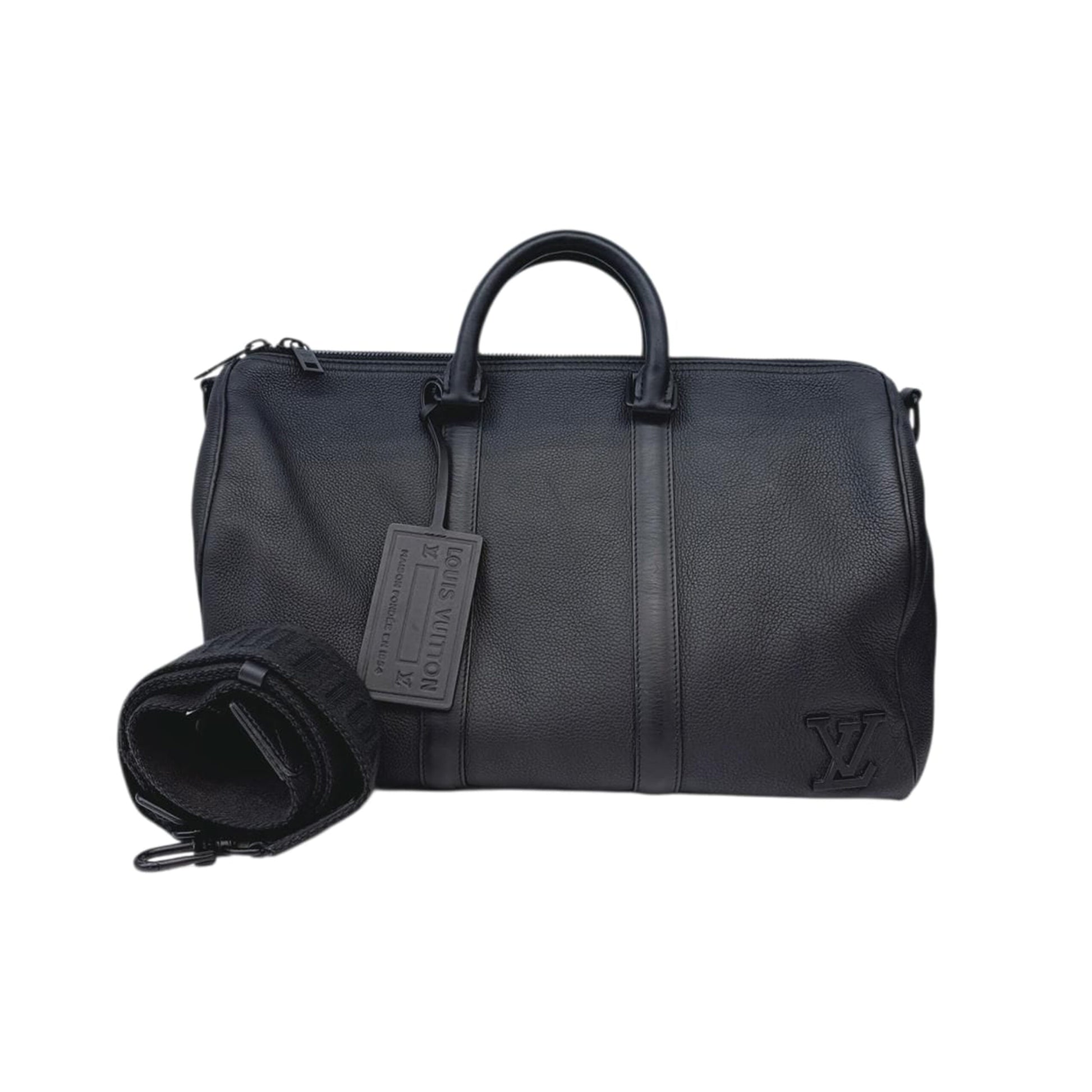BLACK GRAINED CALFSKIN AEROHRAM KEEPALL BANDOULIERE 40