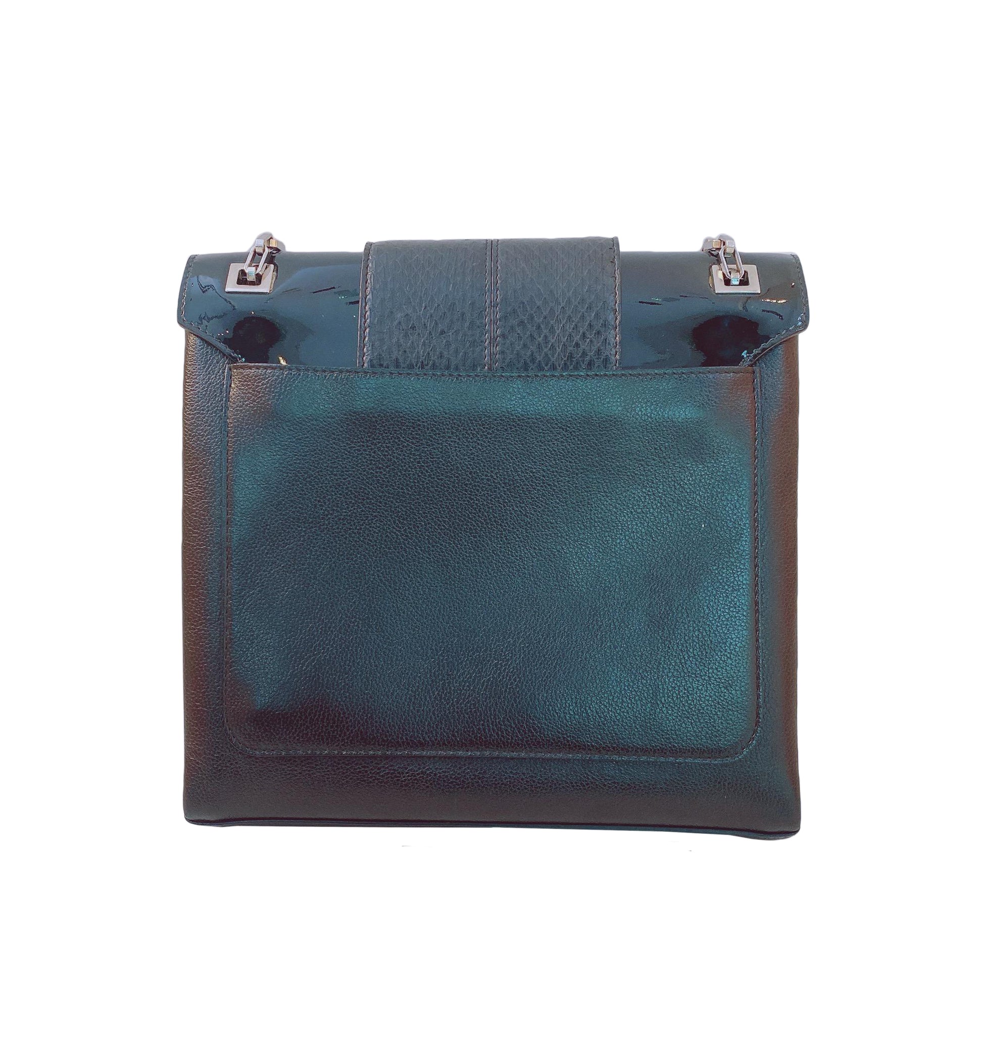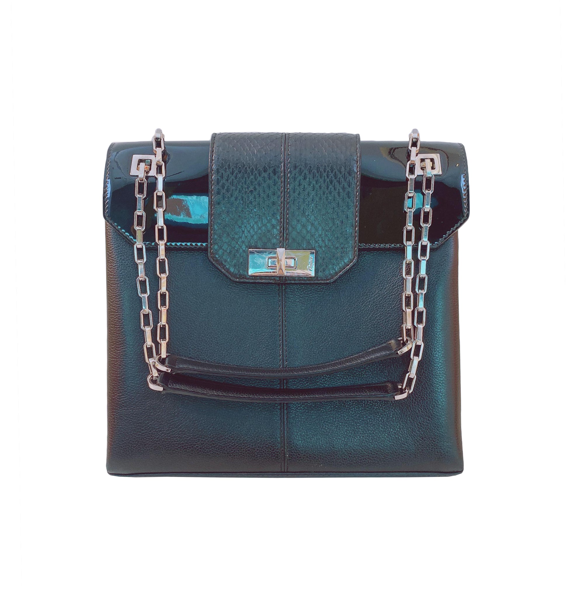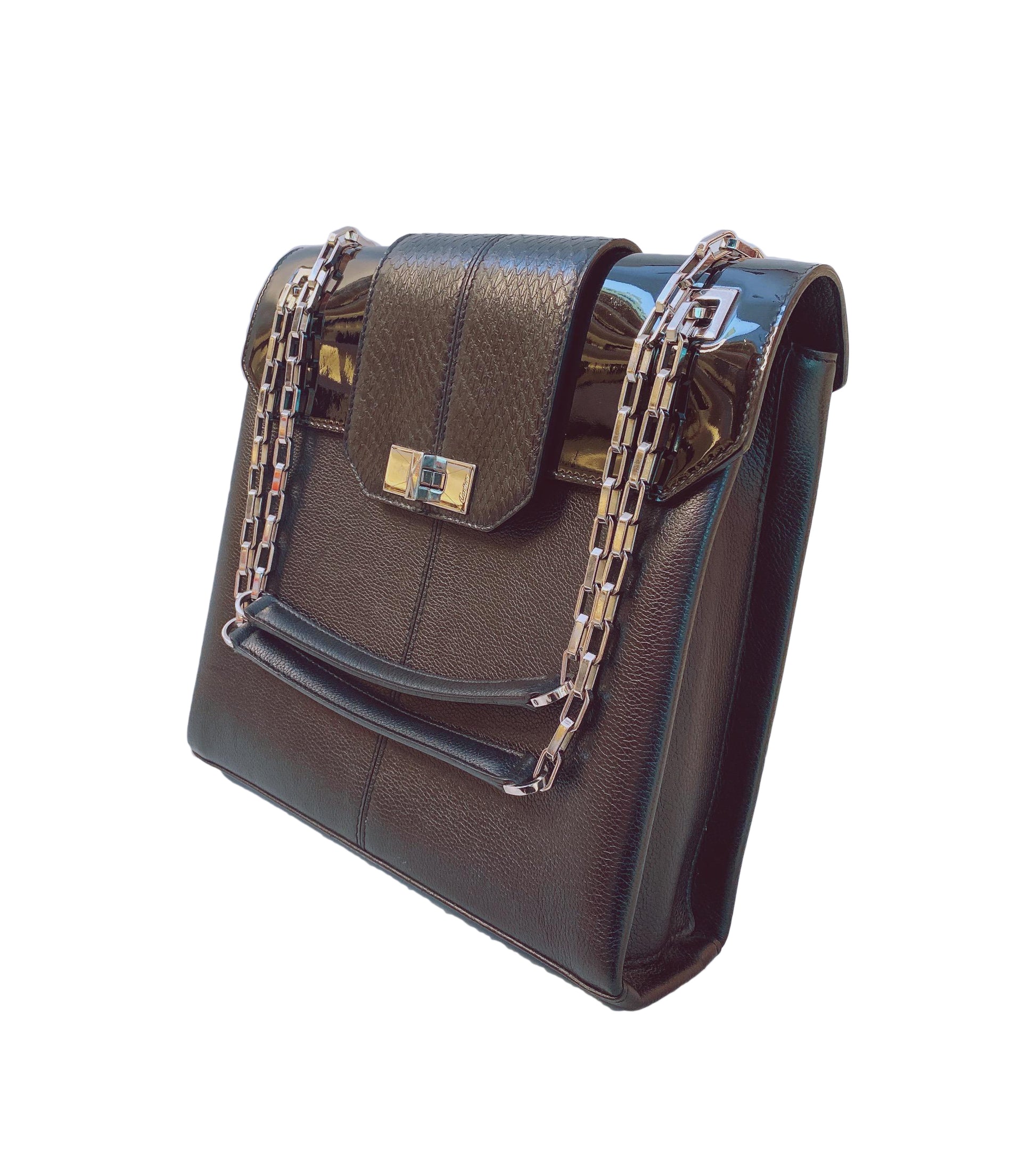 BLACK LEATHER/PATENT AND SNAKESKIN FEMININE LINE CHAIN BAG