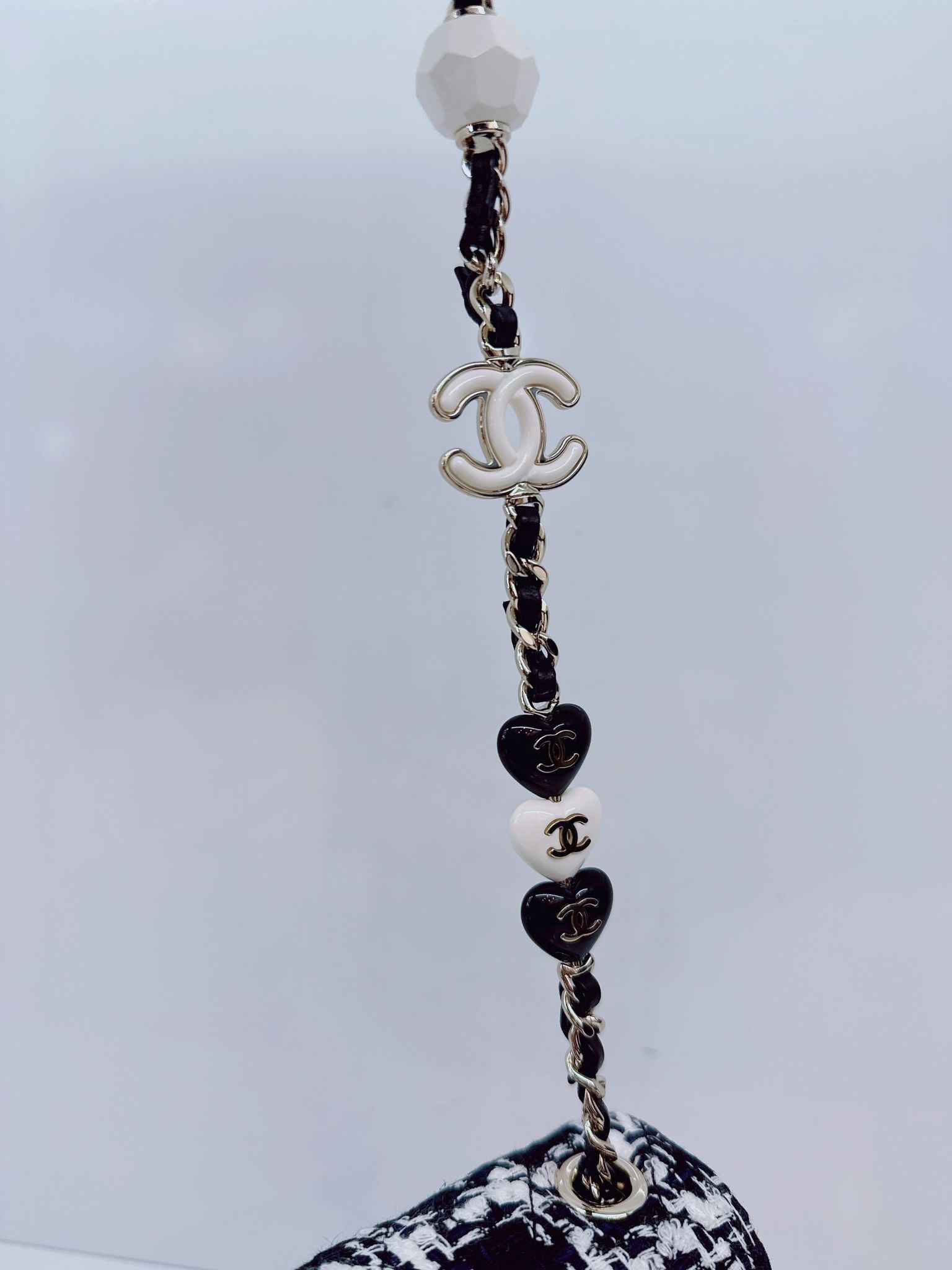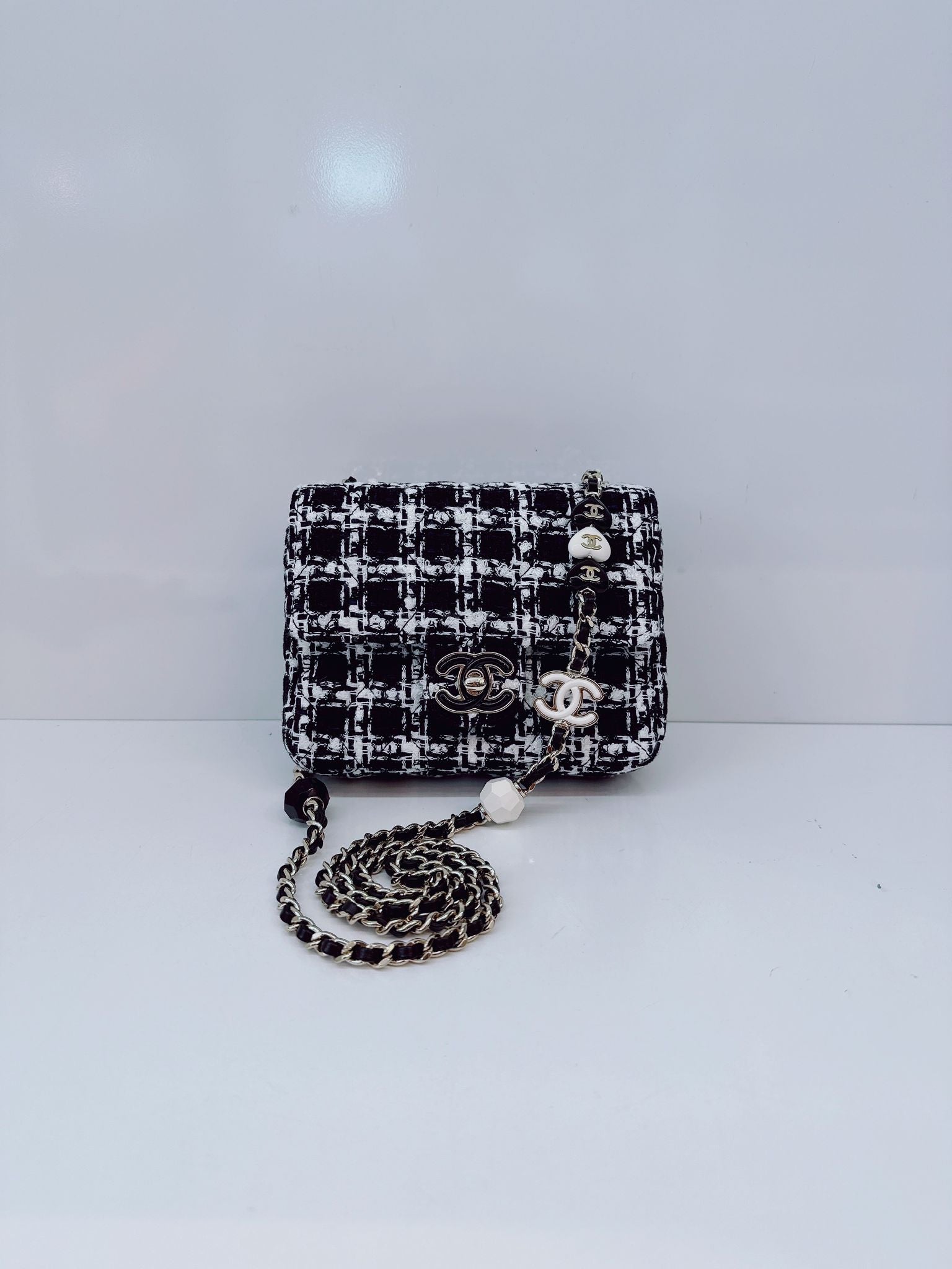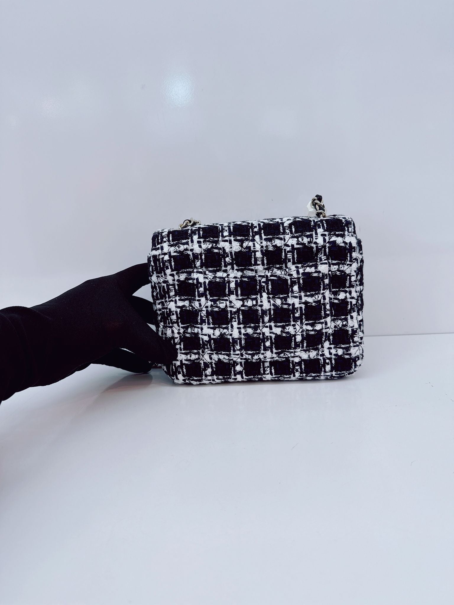 BLACK WHITE SMALL CLASSIC FLAP HOUNDSTOOTH TWEED SHOULDER BAG