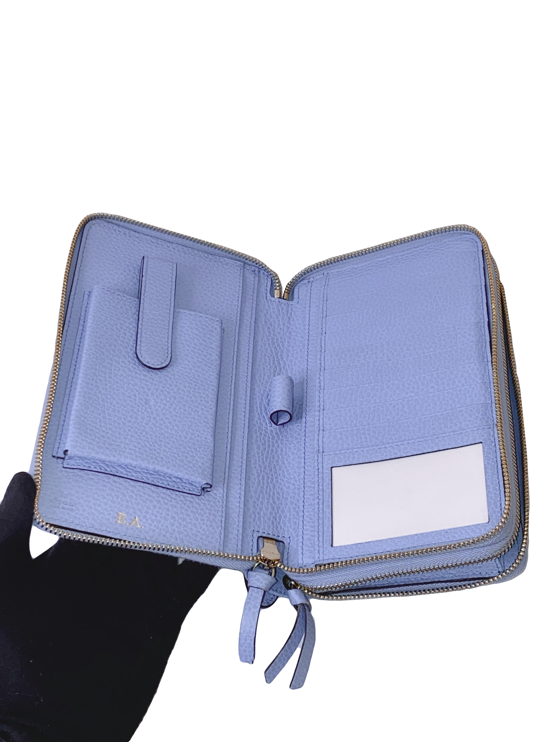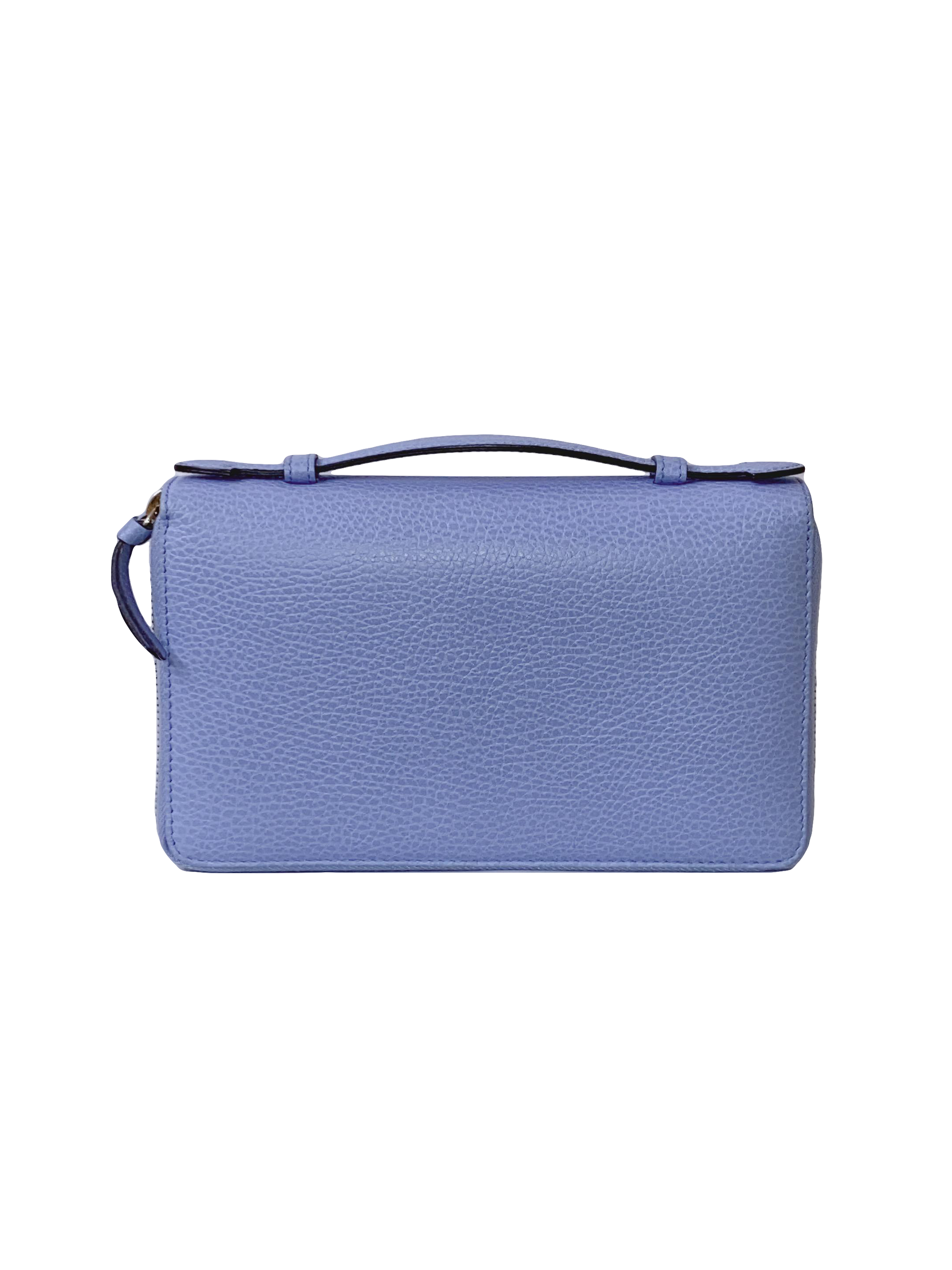 BLUE LEATHER DOUBLE ZIP ORGANIZER CLUTCH