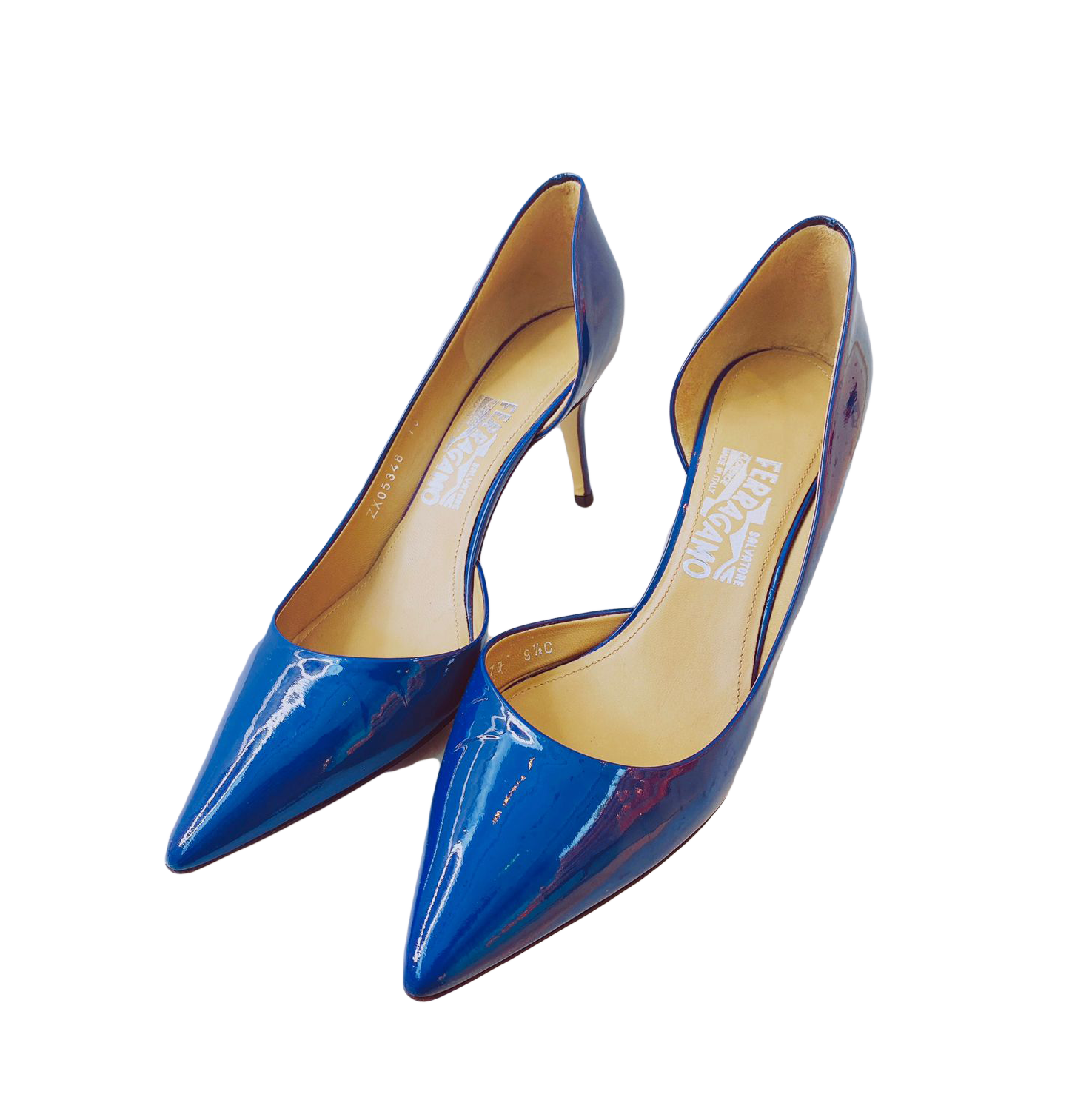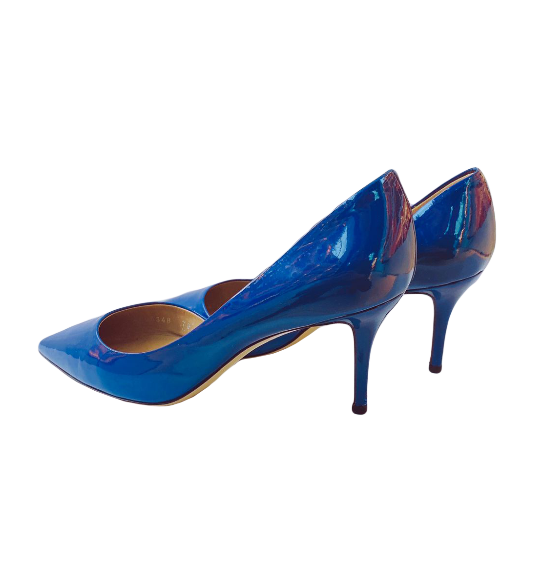 BLUE PATENT LEATHER D'ORSAY PUMPS
