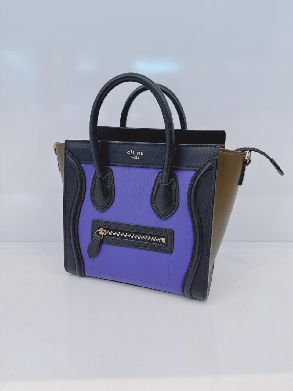 BRIGHT BLUE TRICOLOR LEATHER NANO LUGGAGE TOTE BAG