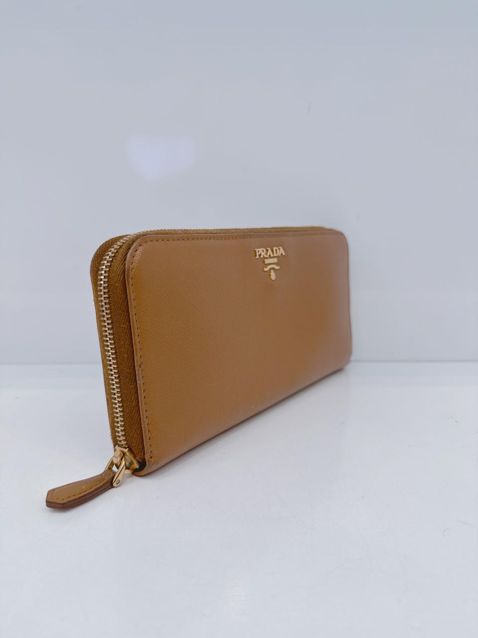 BROWN SAFFIANO LEATHER ZIP AROUND WALLET
