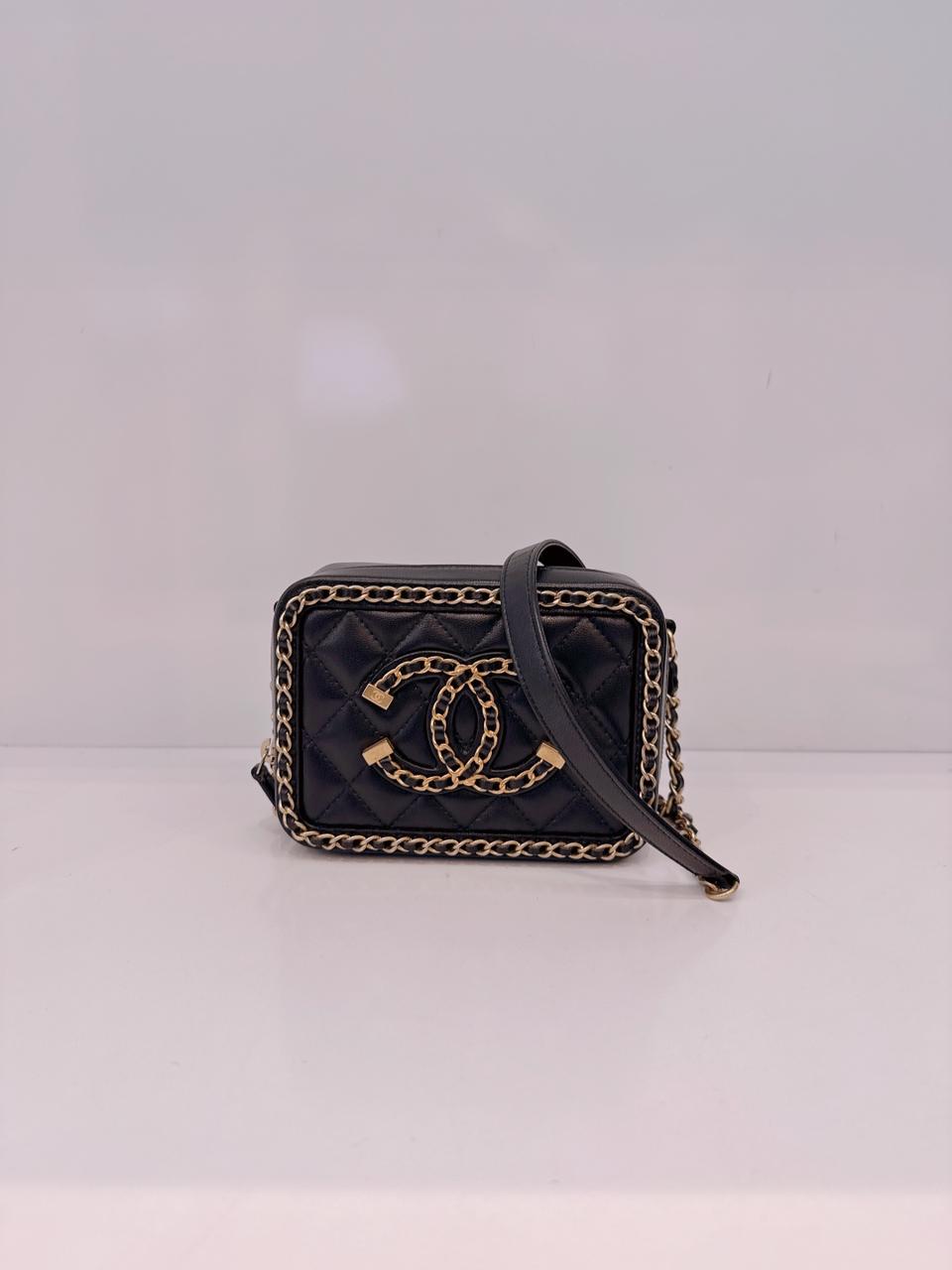 BLACK VANITY CASE WITH FILIGREE CHAIN MINI BAG
