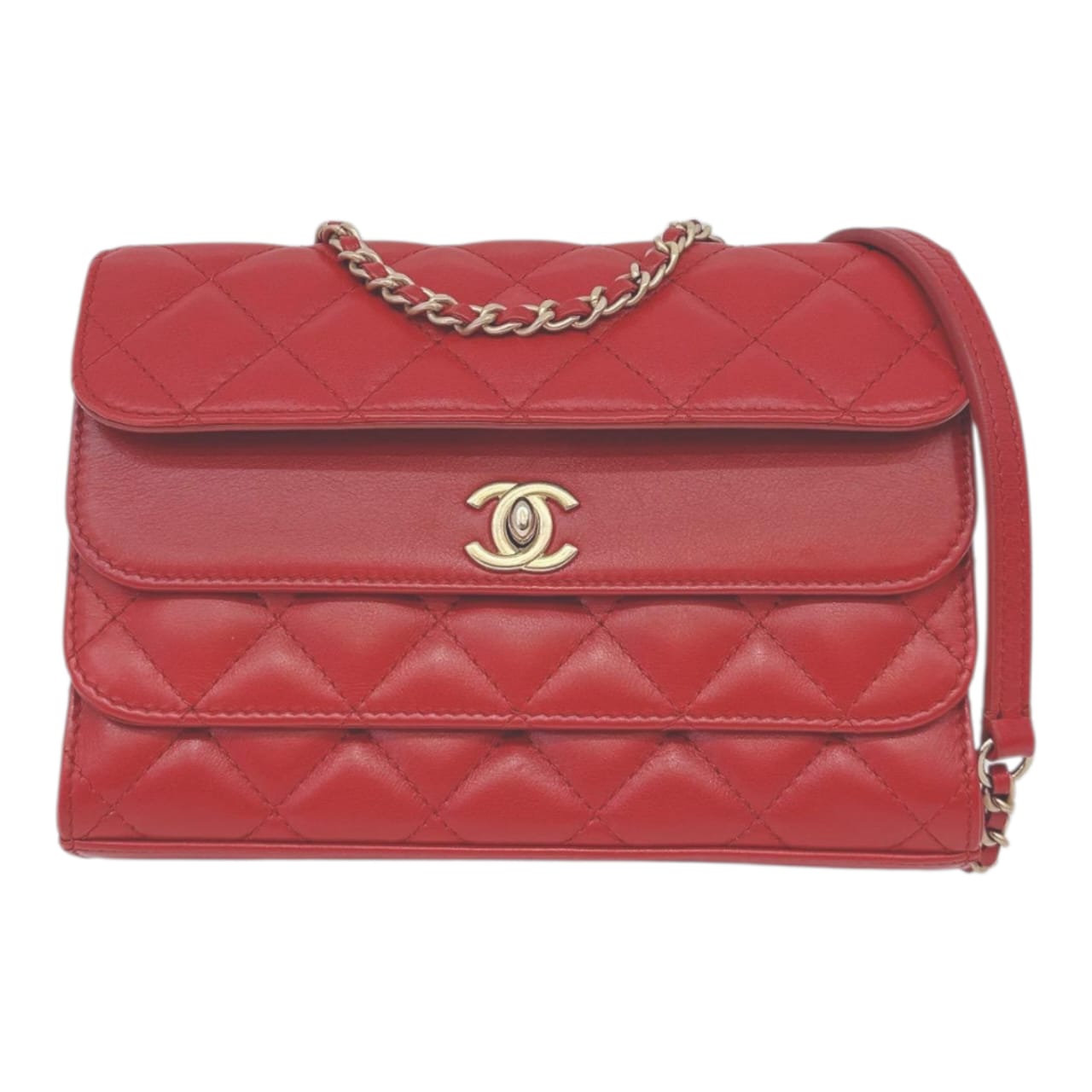 RED QUILTED CALFSKIN LEATHER TRIPLE FLAP BAG