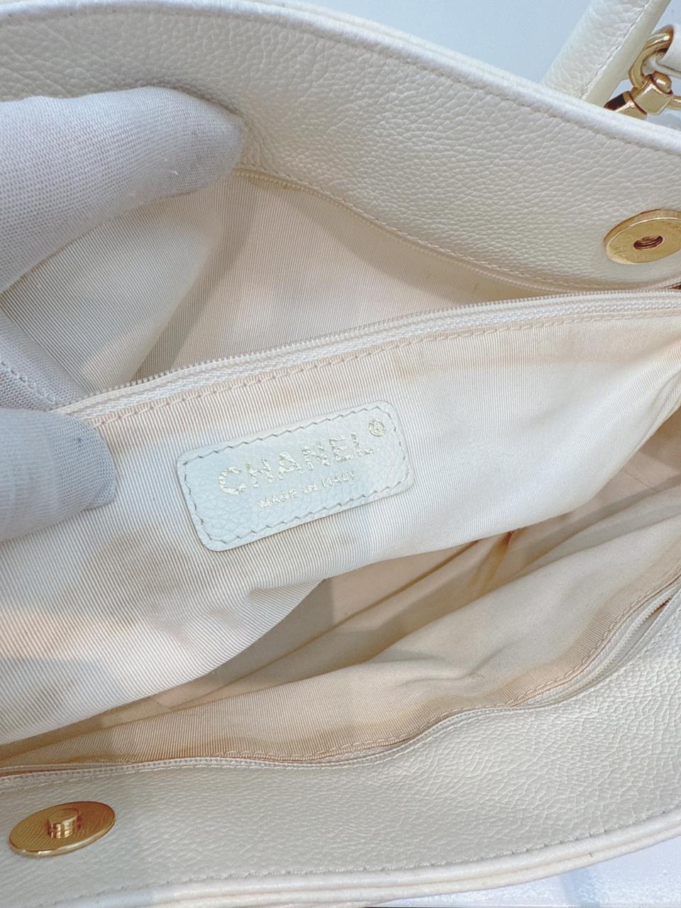WHITE CAVIAR LEATHER CERF SHOPPER TOTE