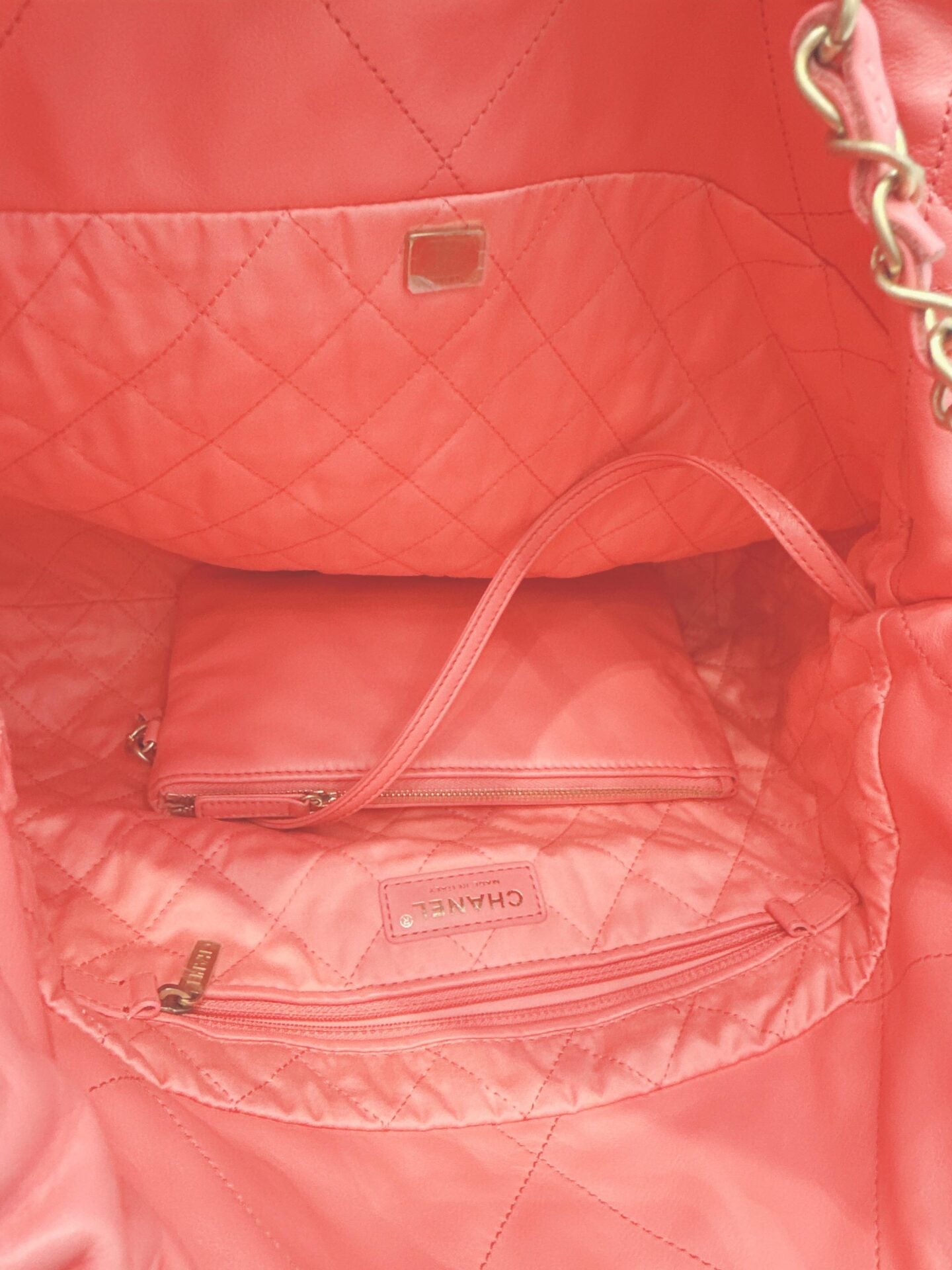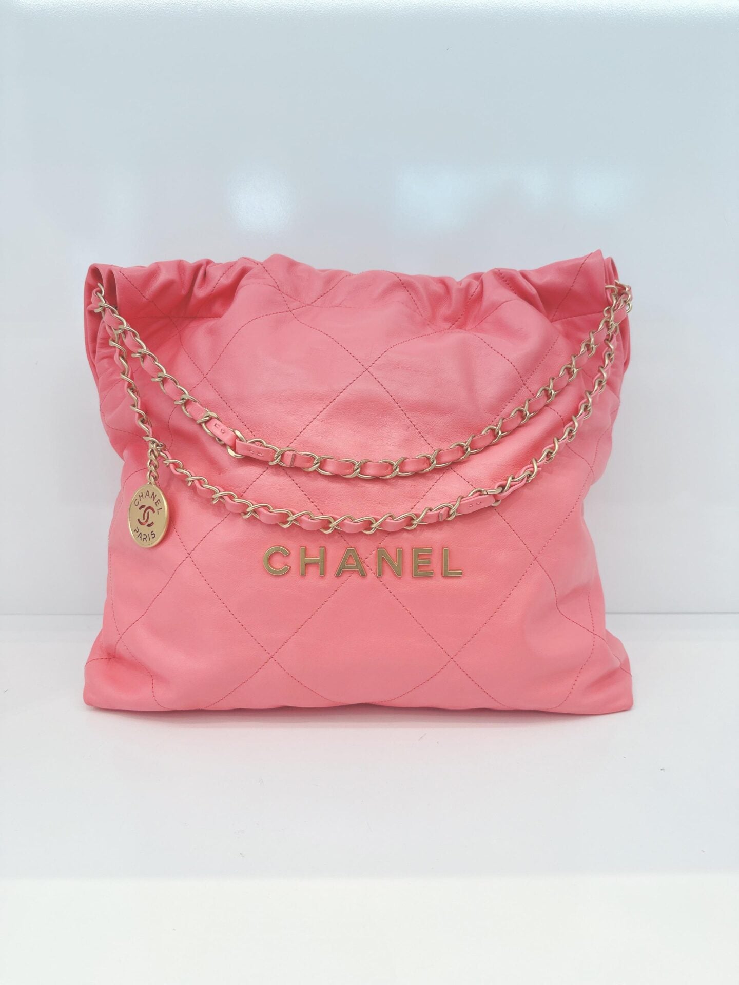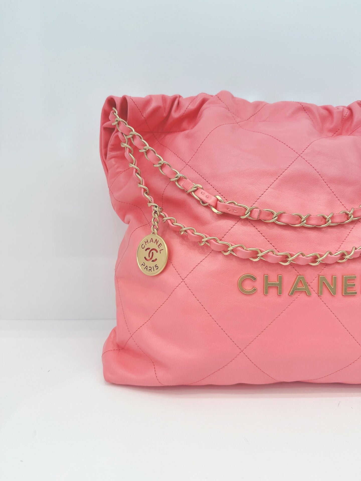 CORAL PINK CALFSKIN LEATHER CHANEL 22 HANDBAG