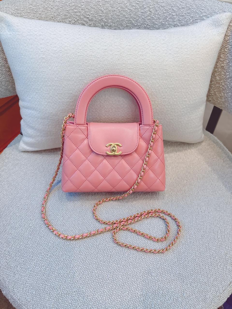 CORAL PINK QUILTED LEATHER SMALL KELLY SHOPPER BAG GOLD TONE HARDWARE