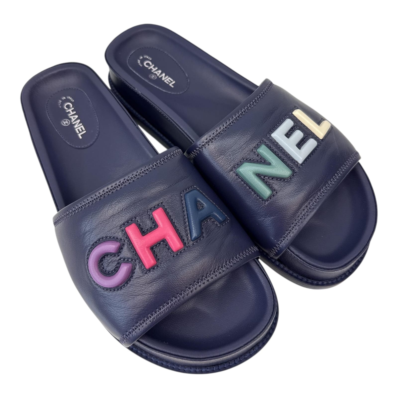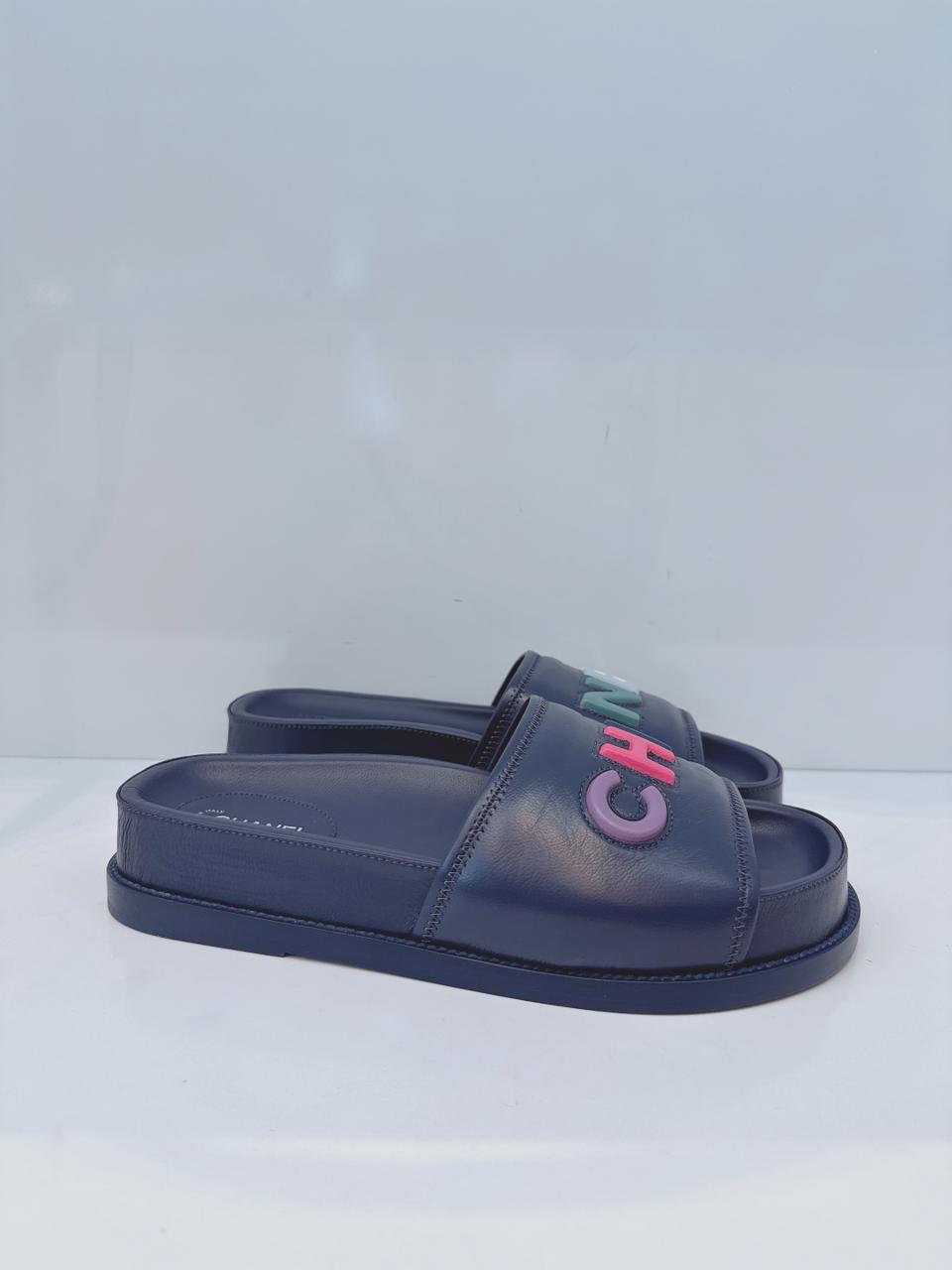 DARK VIOLET MULTICOLOR LOGO SLIDE SANDALS 41C