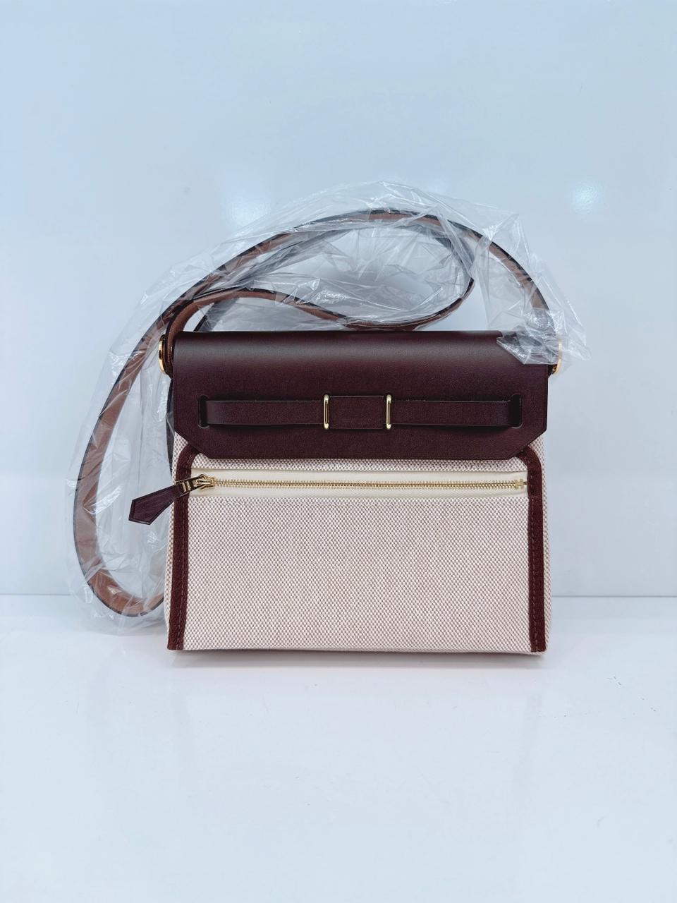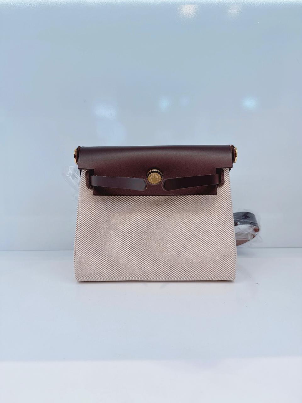 ECRU BEIGE EBENE CANVAS HERBAG MINI ZIP 20 GOLD HARDWARE