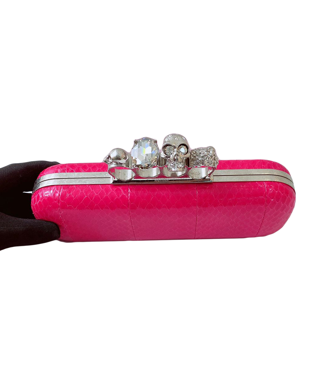 FUCHSIA PINK PYTHON CRYSTAL KNUCKLE DUSTER BOX CLUTH