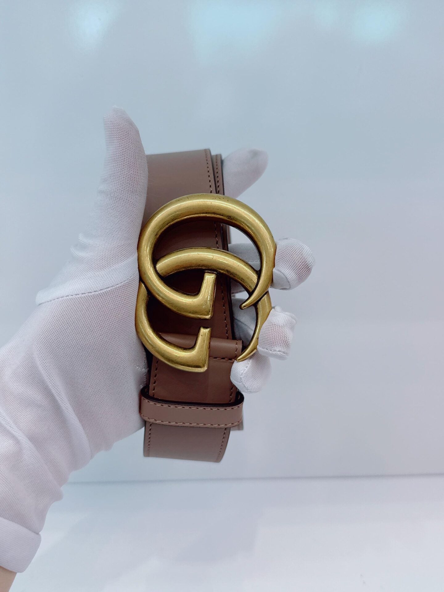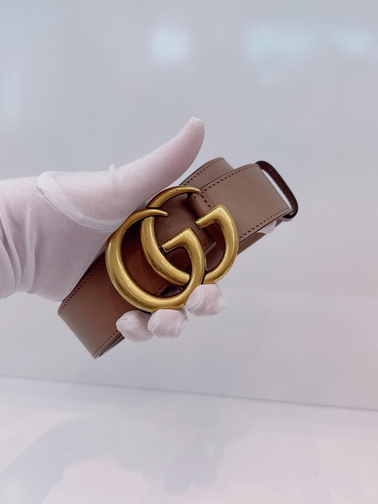 GRAY LEATHER GG MARMONT BUCKLE BELT 95CM