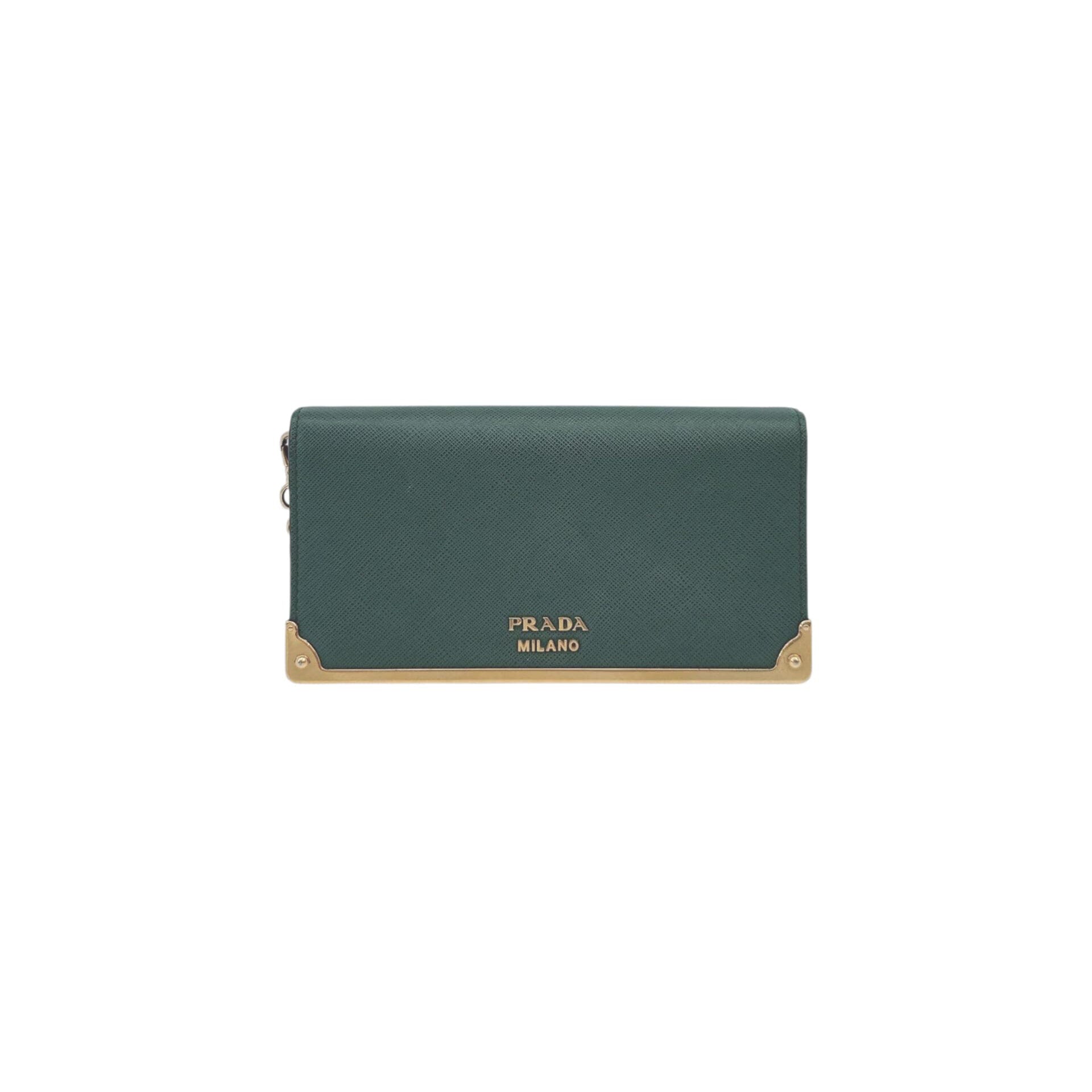 GREEN SAFFIANO LEATHER CAHIER WALLET ON CHAIN