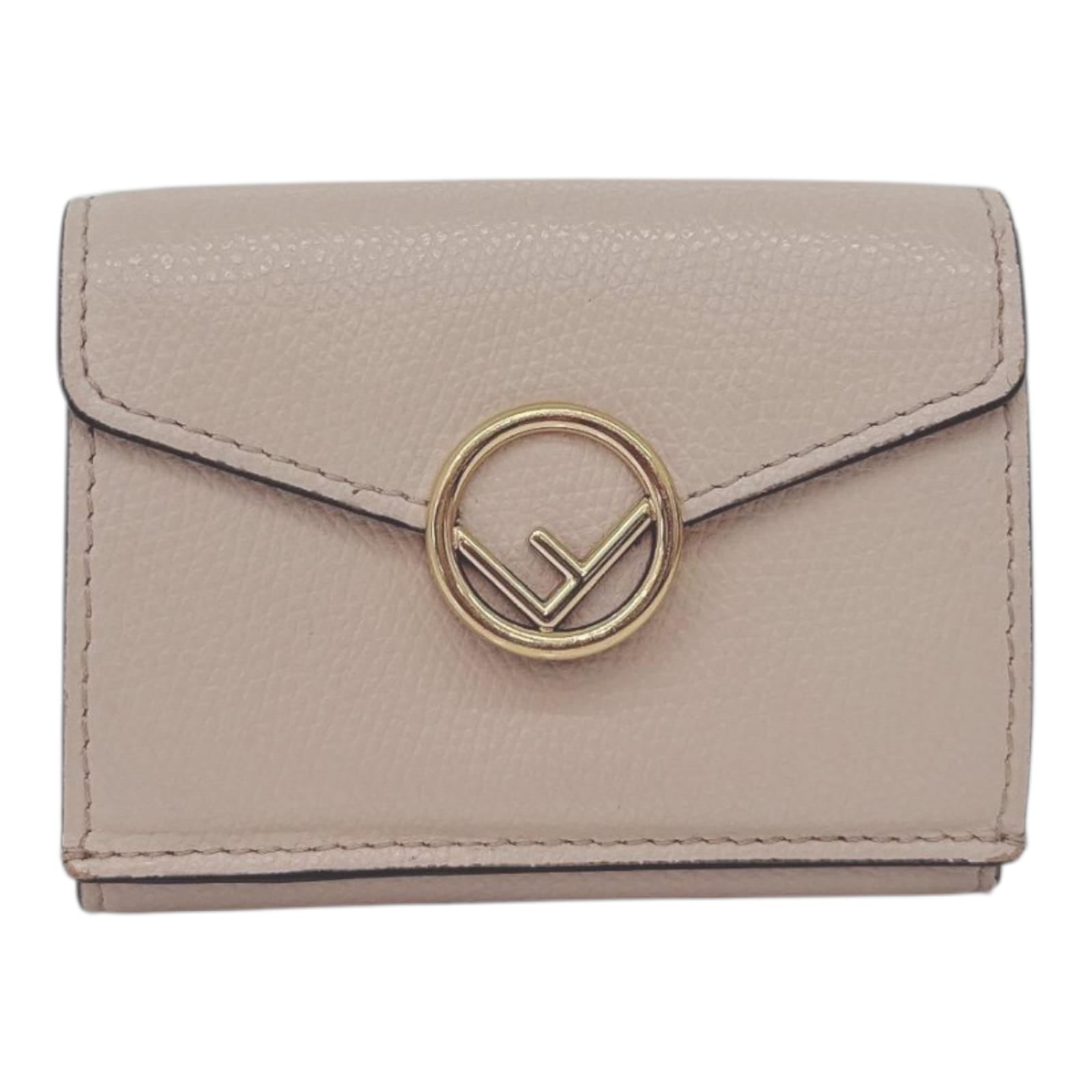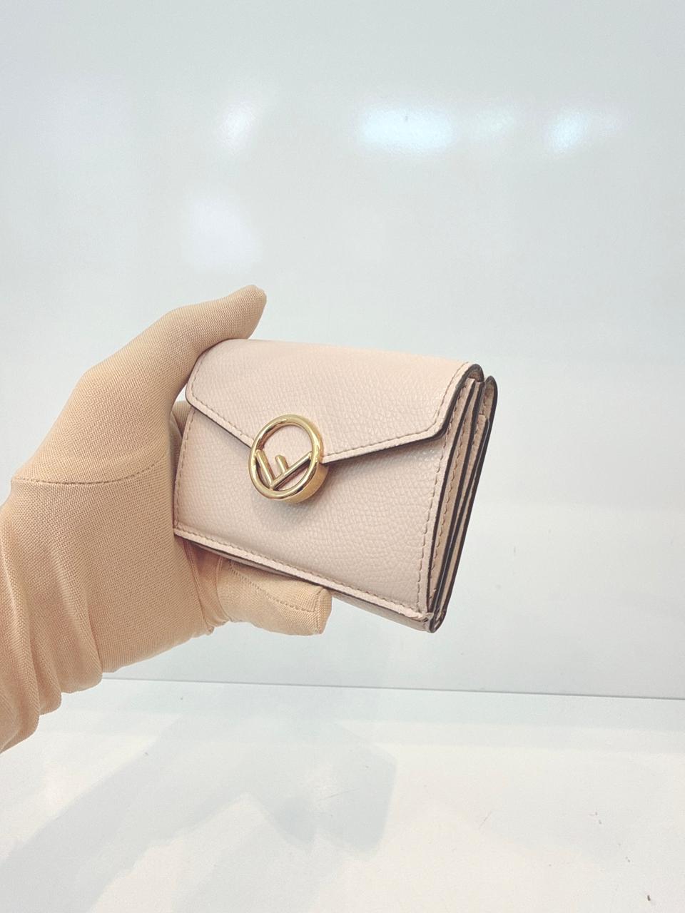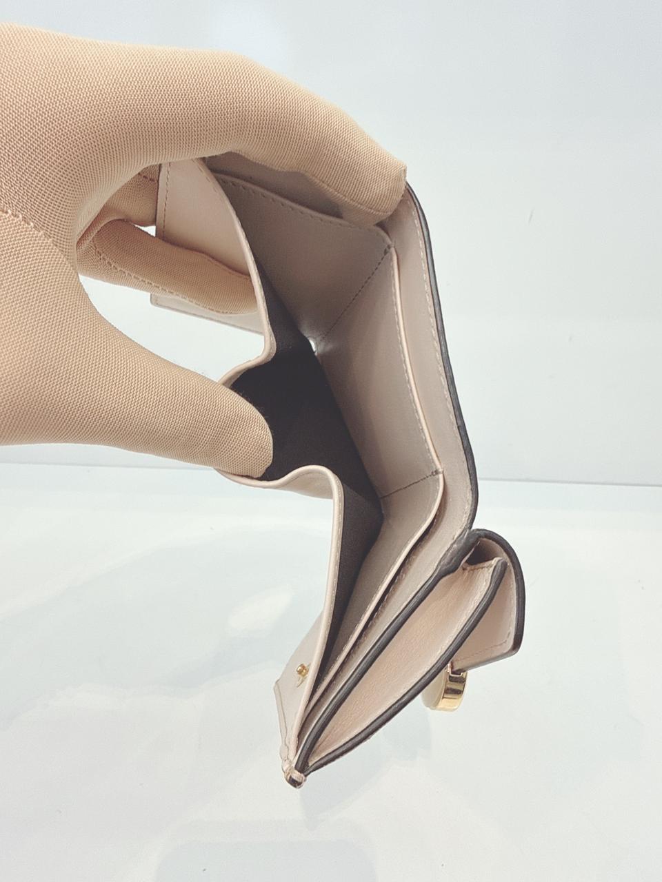 LIGHT BEIGE LEATHER COMPACT F MICRO TRIFOLD WALLET