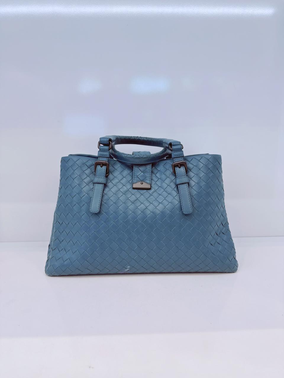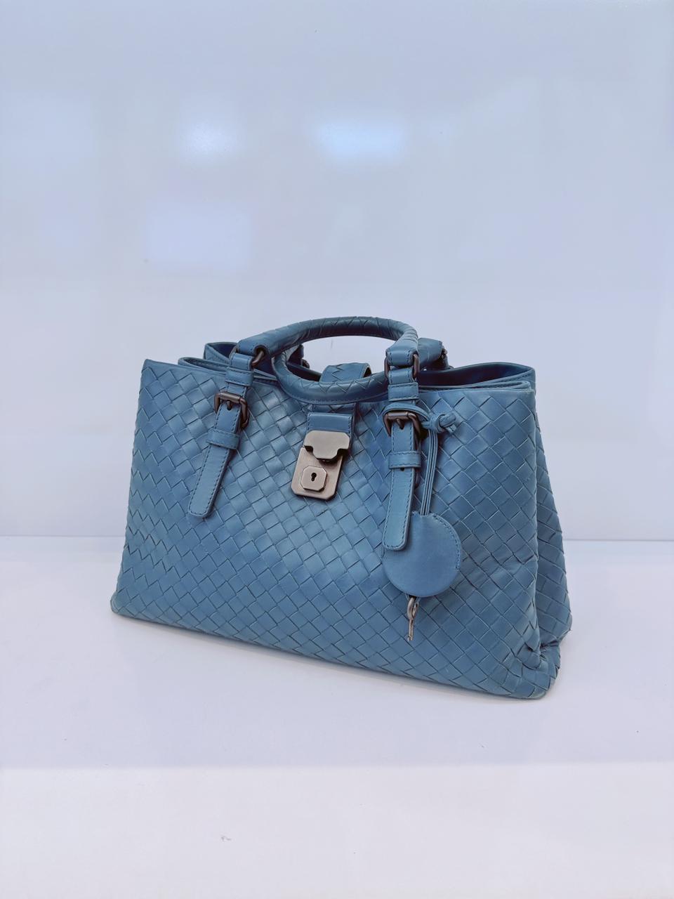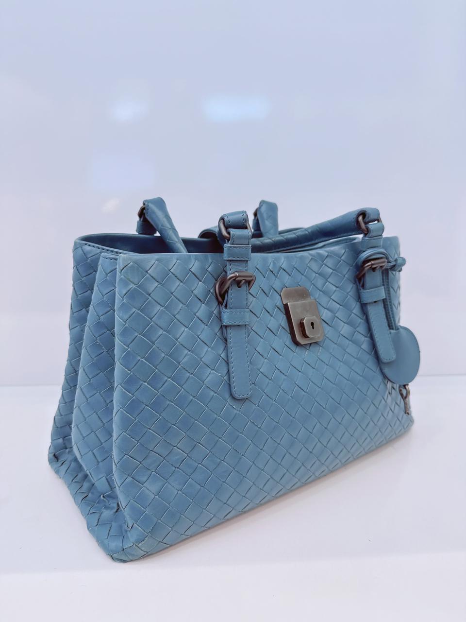 LIGHT BLUE SMALL NAPPA INTRECCIATO ROMA SATCHEL BAG