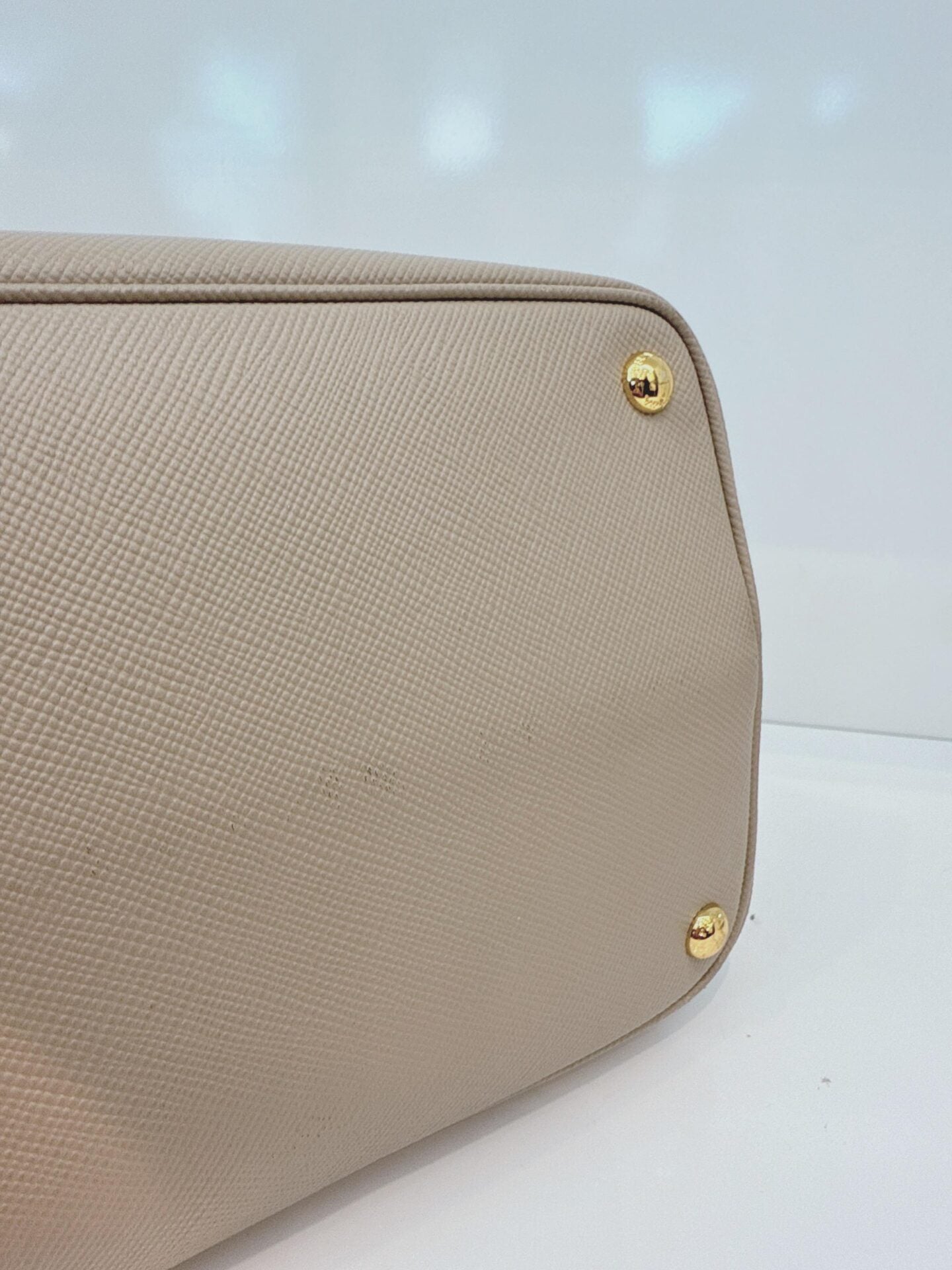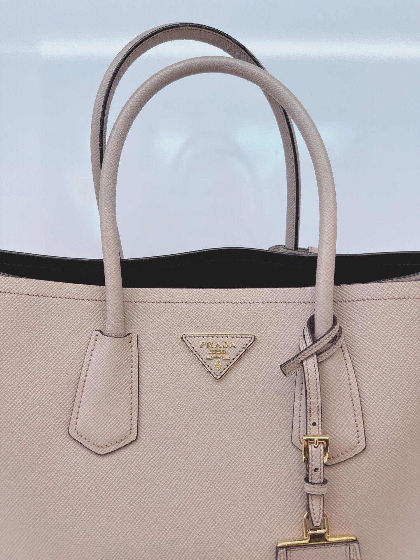 LIGHT GRAY DOUBLE SAFFIANO LEATHER TOTE BAG