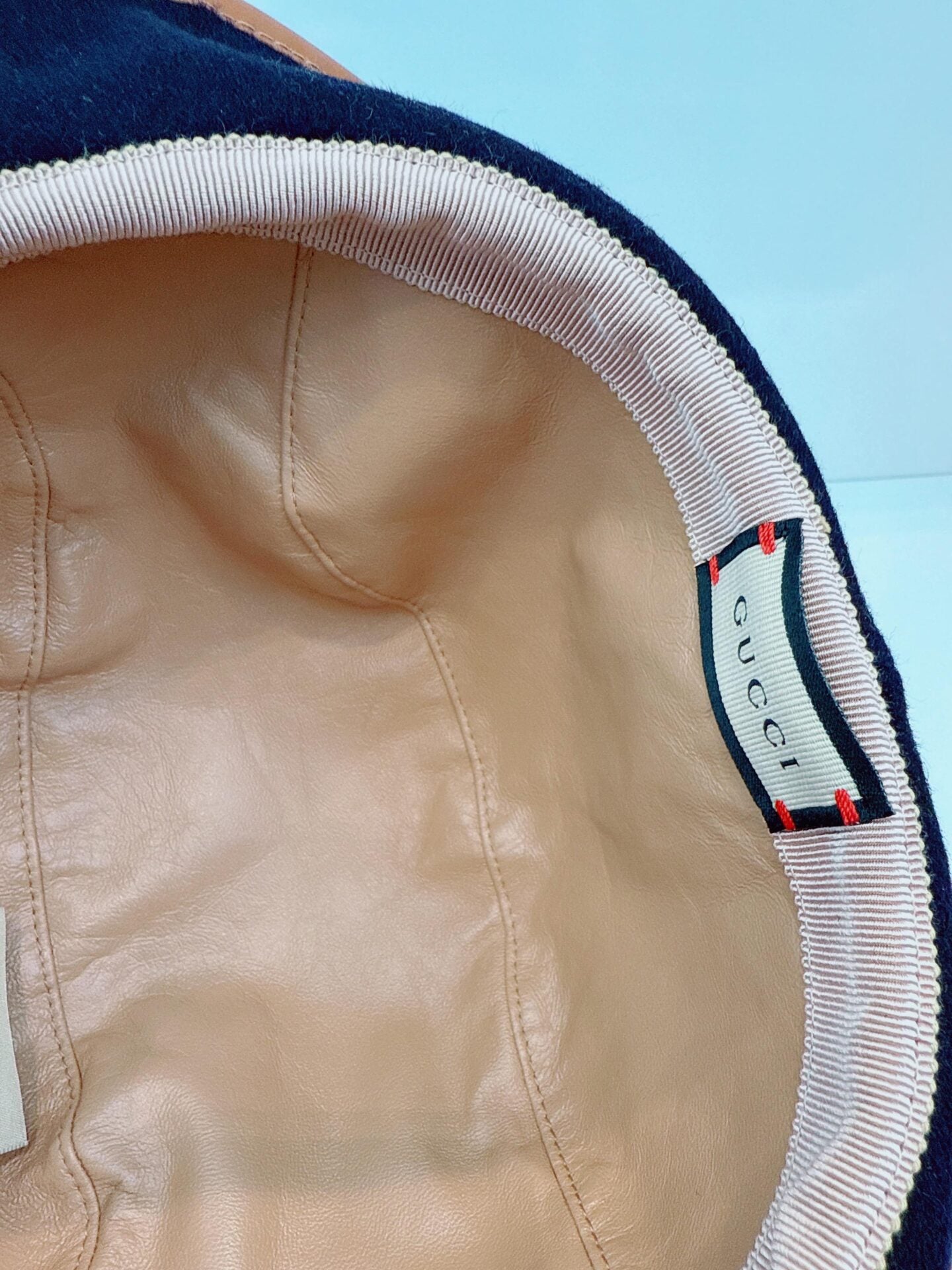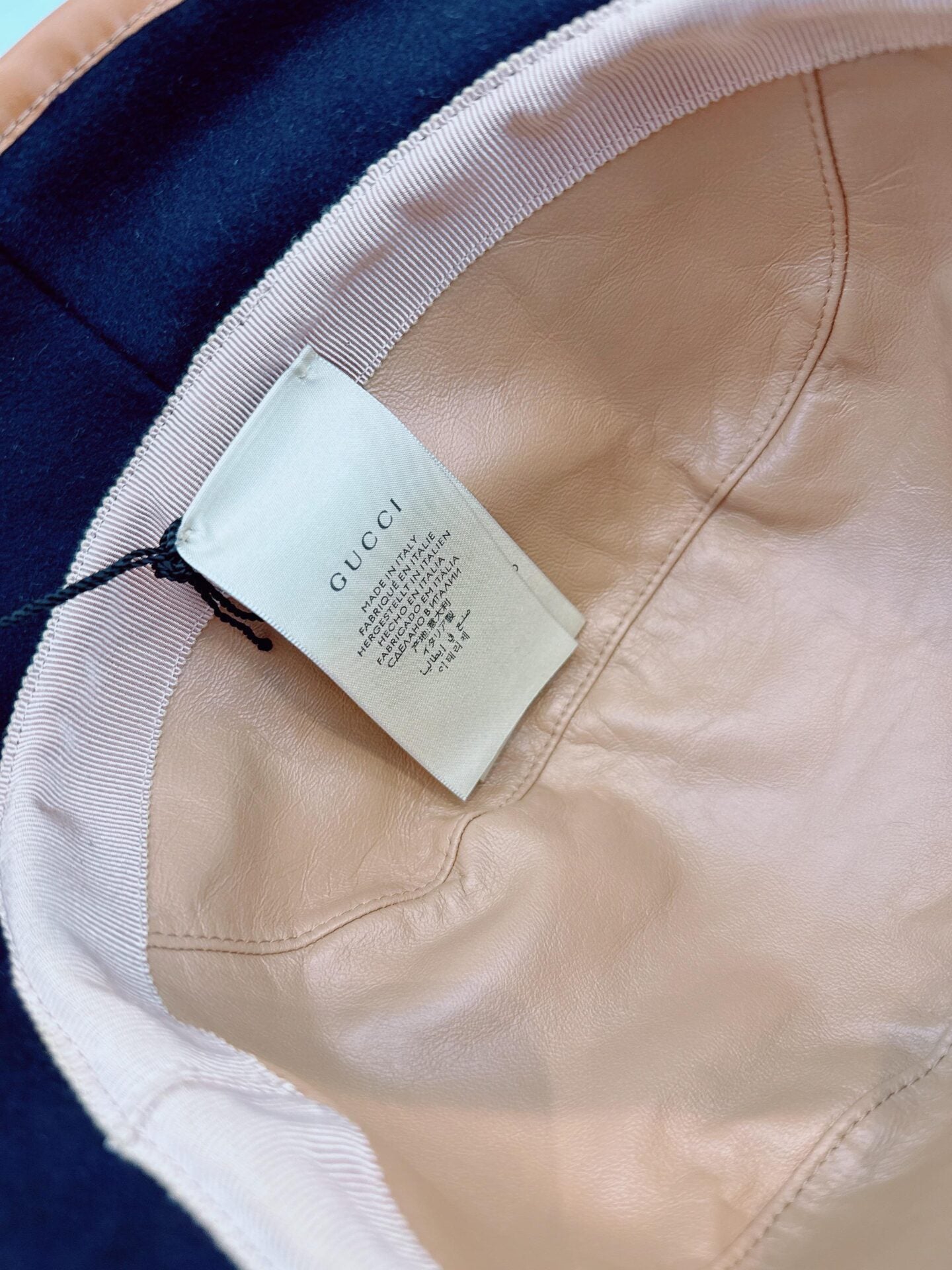 NAVY GG EMBROIDERED WOOL BLEND FELT BUCKET HAT M 57CM