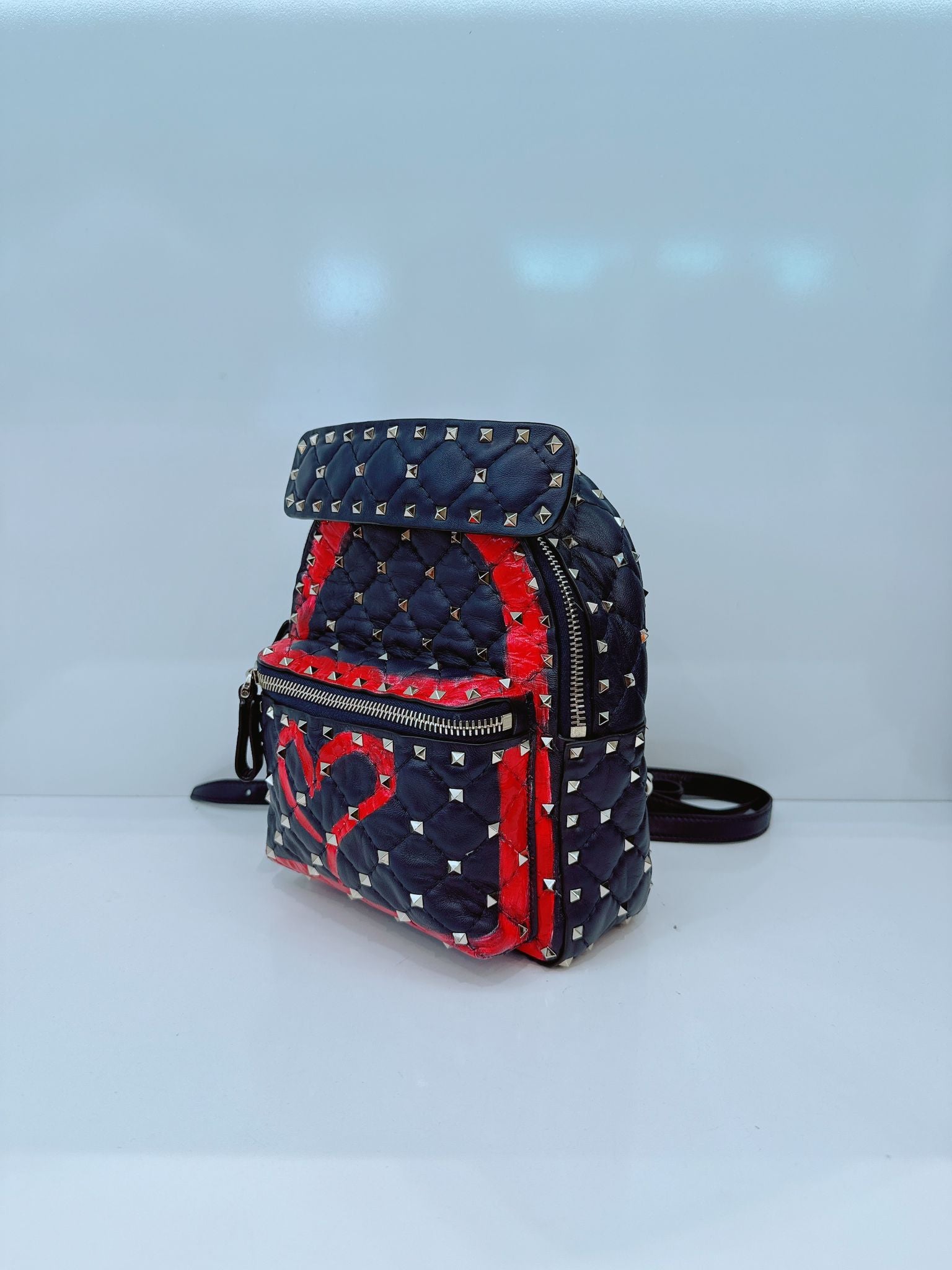 NAVY ROCKSTUD SPIKE IT HEART MINI LEATHER BACKPACK