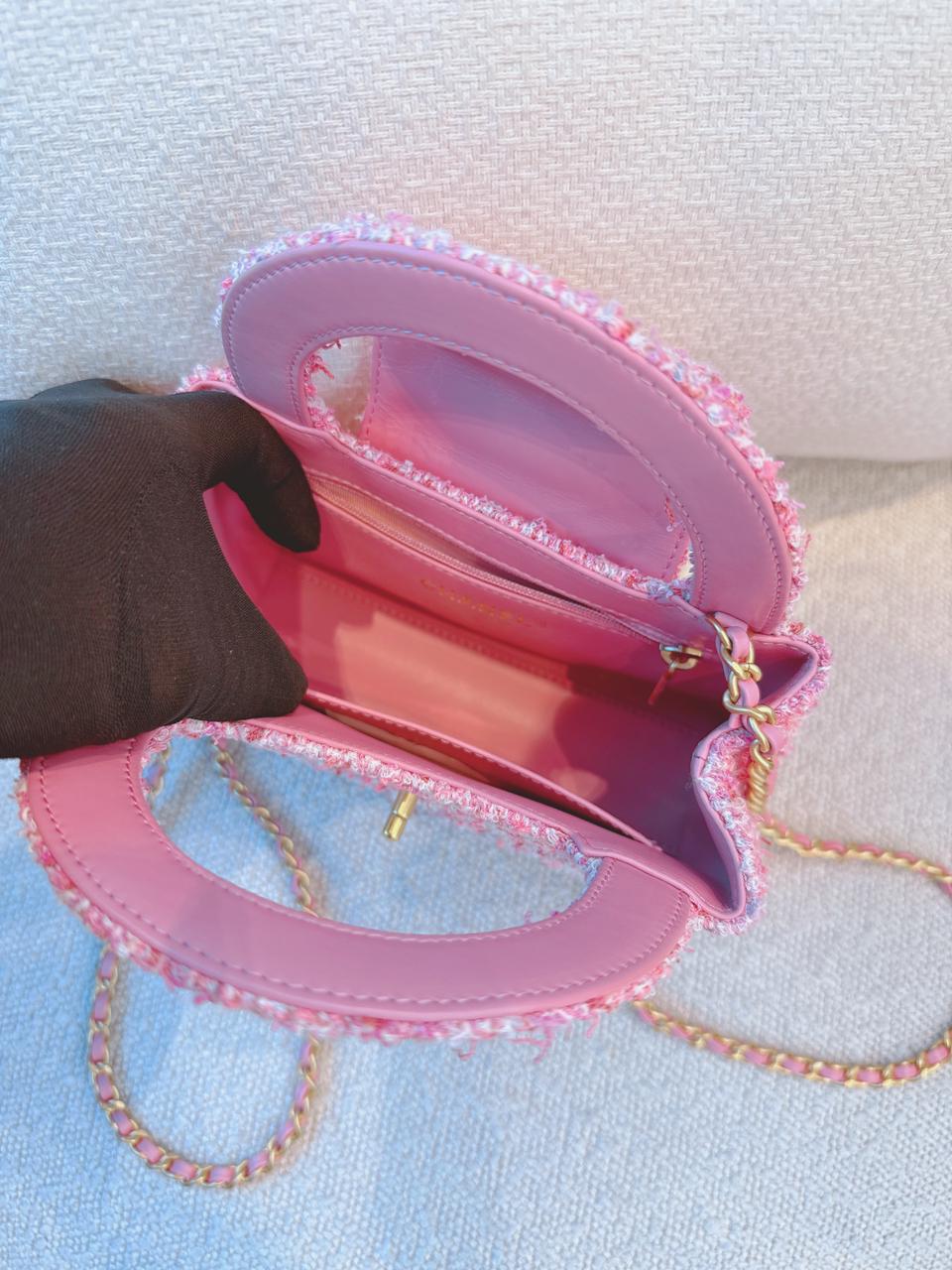 PINK TWEED MINI KELLY SHOPPER BAG GOLD TONE HARDWARE