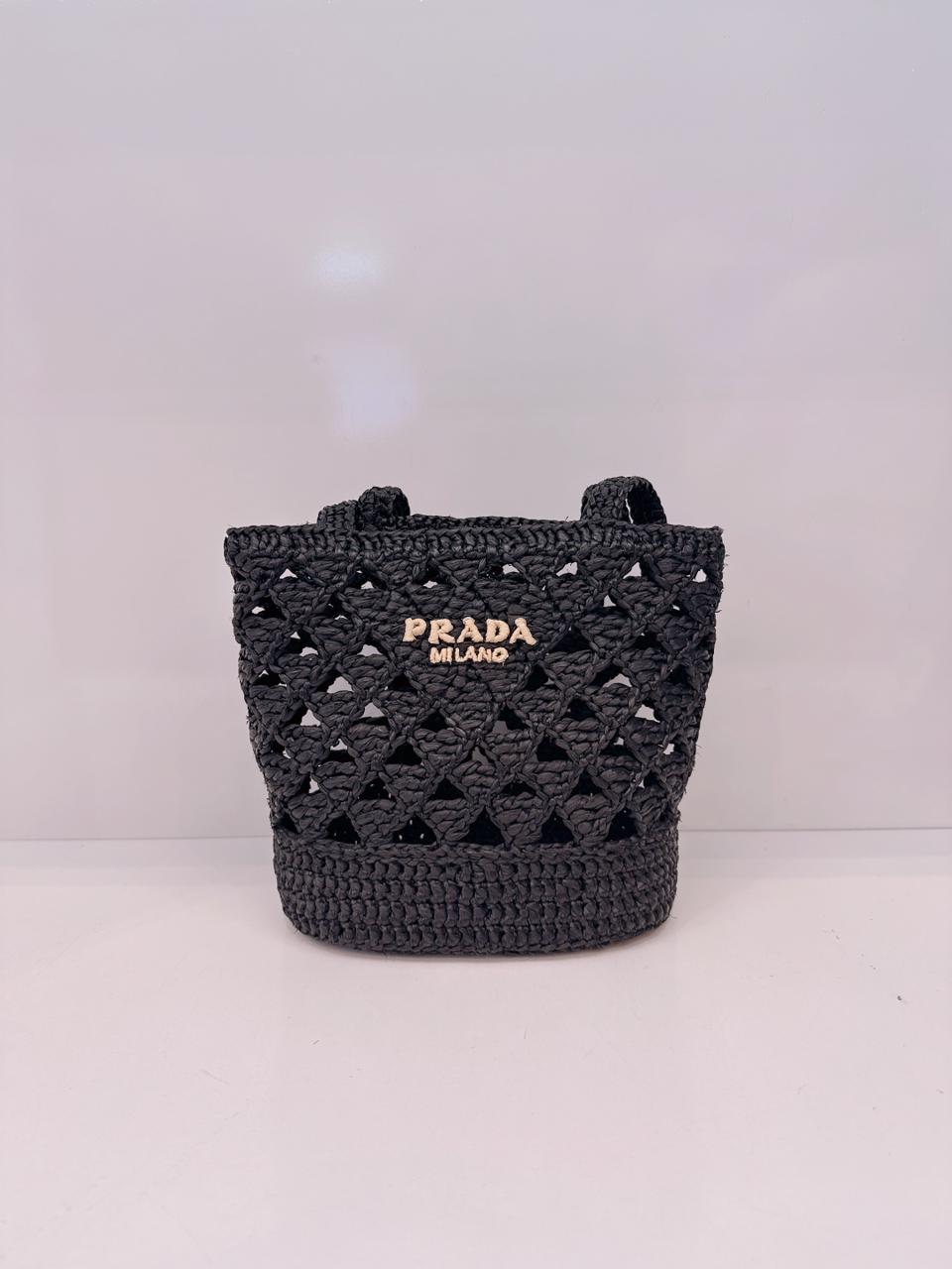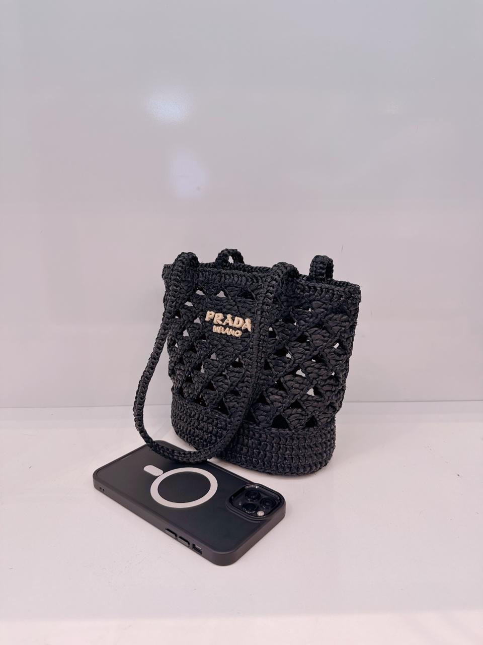 BLACK CROCHET RAFFIA SMALL TOTE SHOULDER BAG