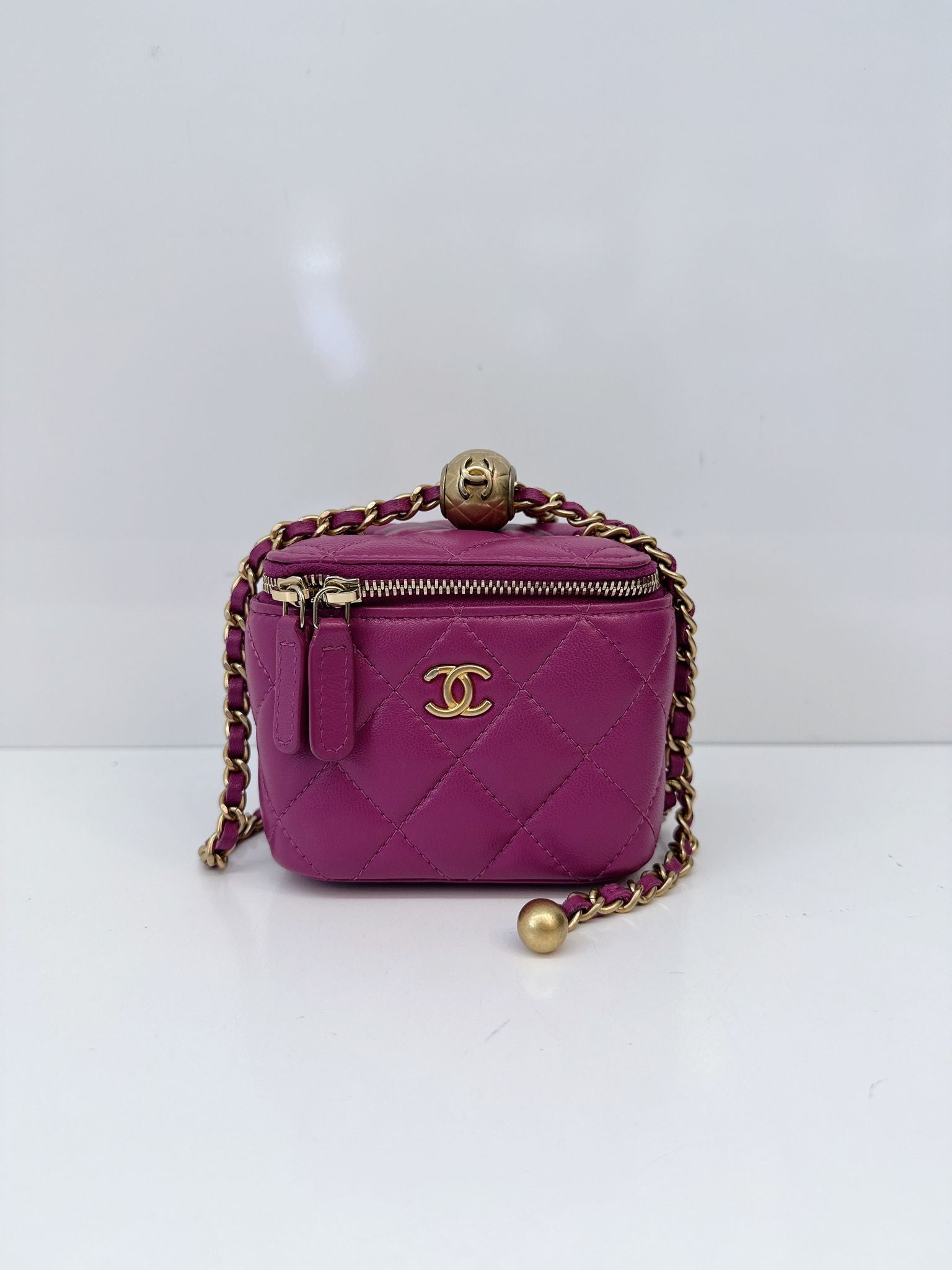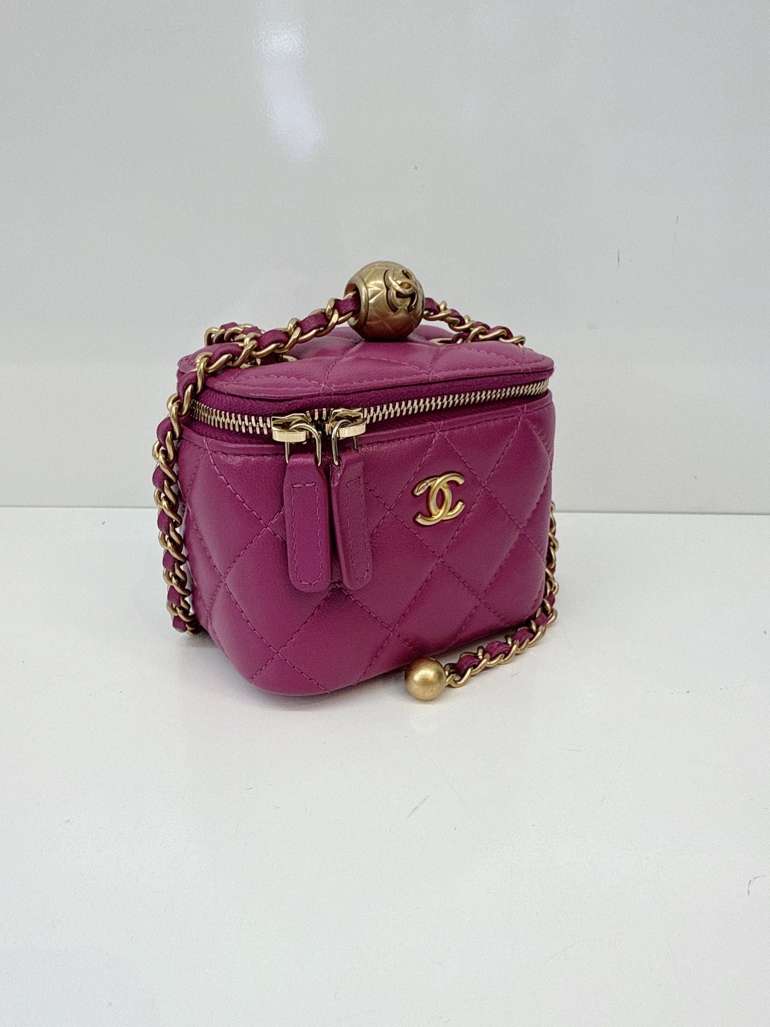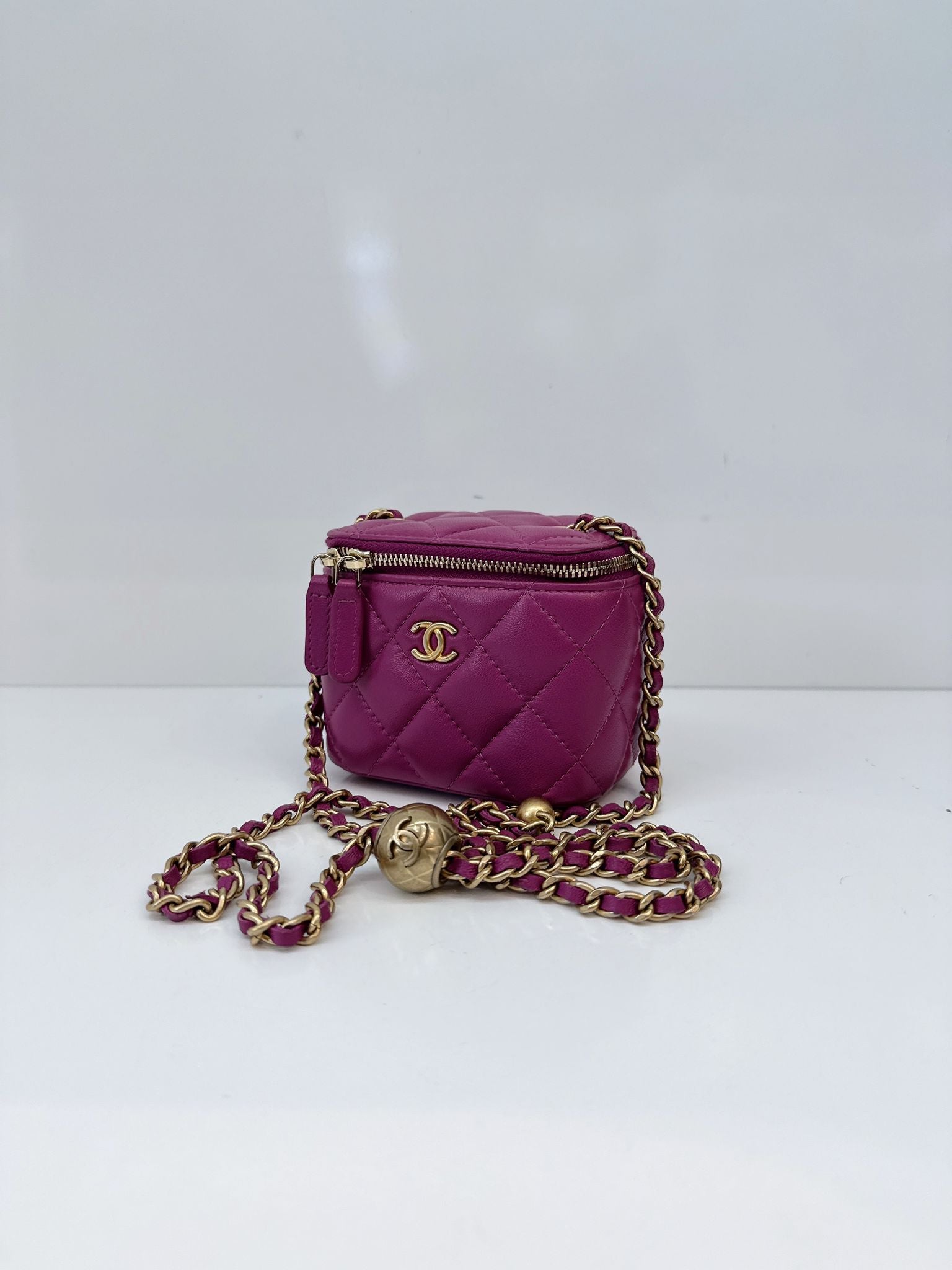 PURPLE LAMBSKIN MATELASSE COCO BALL CHAIN POUCH SHOULDER BAG