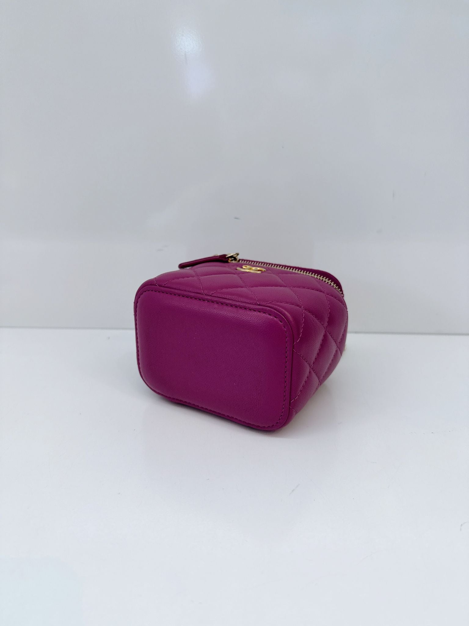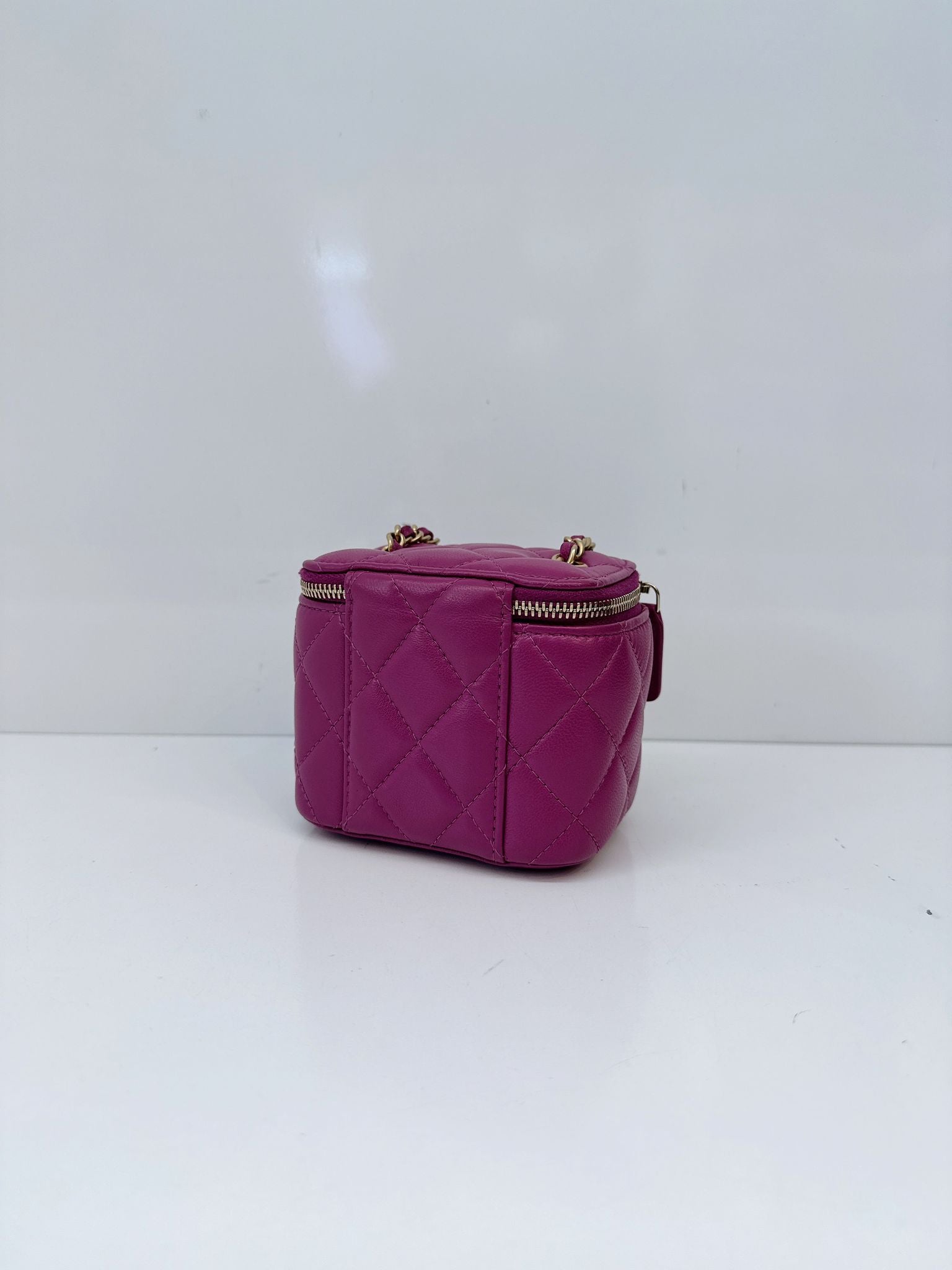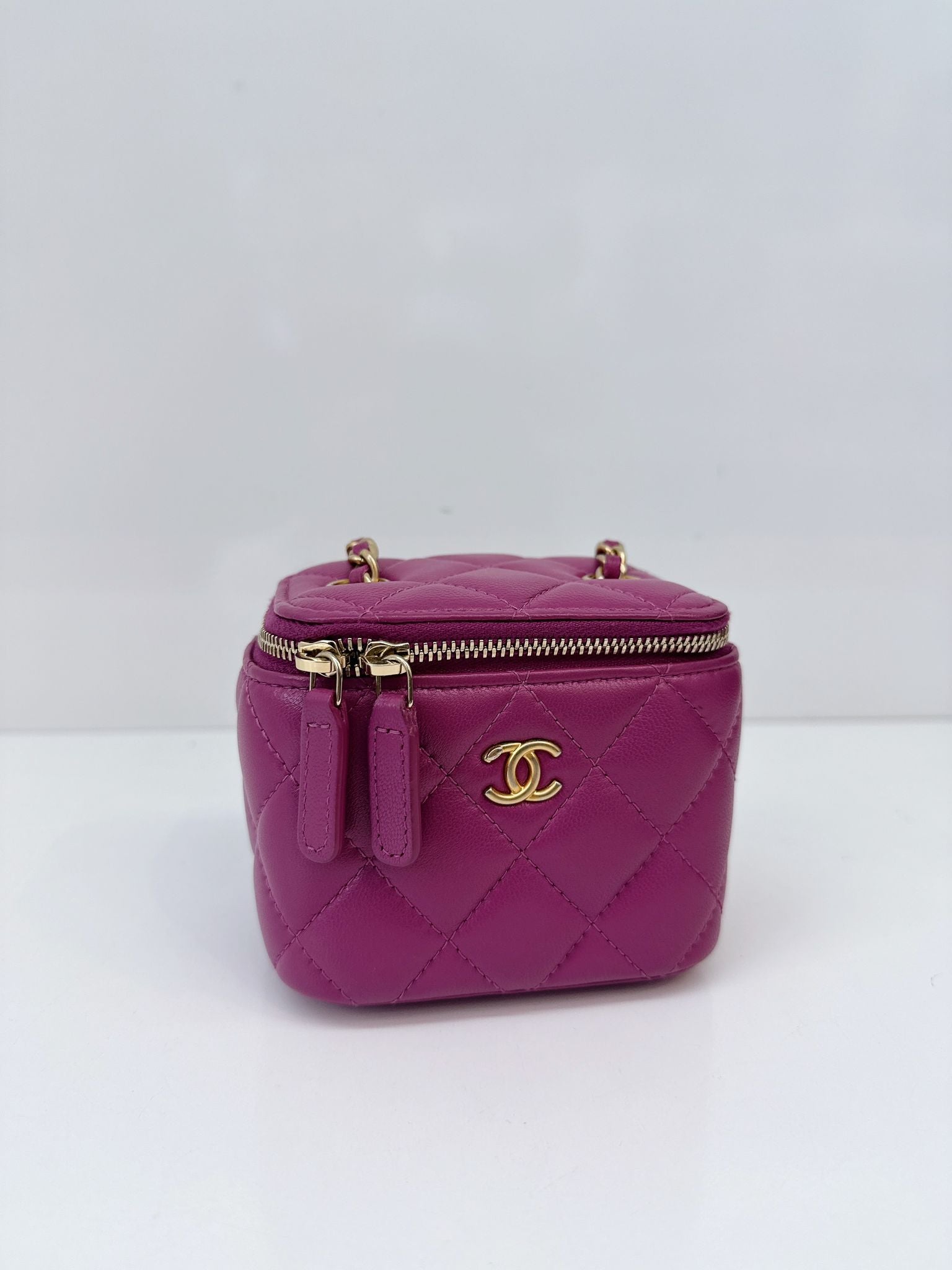 PURPLE LAMBSKIN MATELASSE COCO BALL CHAIN POUCH SHOULDER BAG