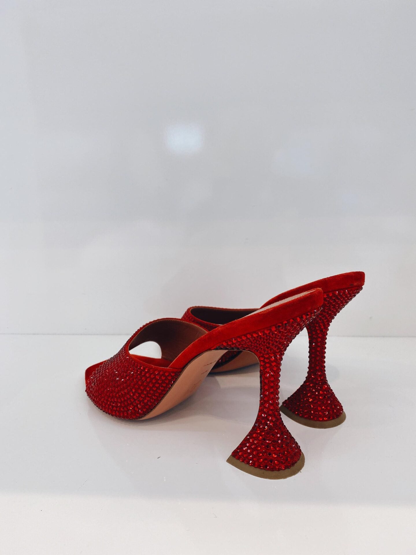 RED CRYSTAL EMBELLISED SUEDE LUPITA SANDALS 40.5