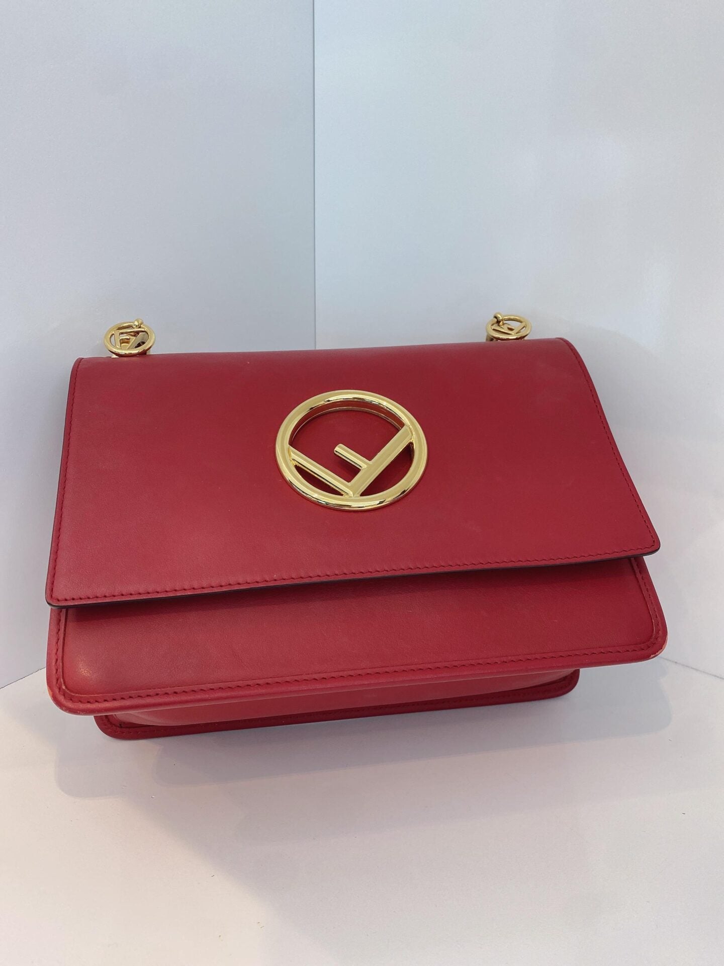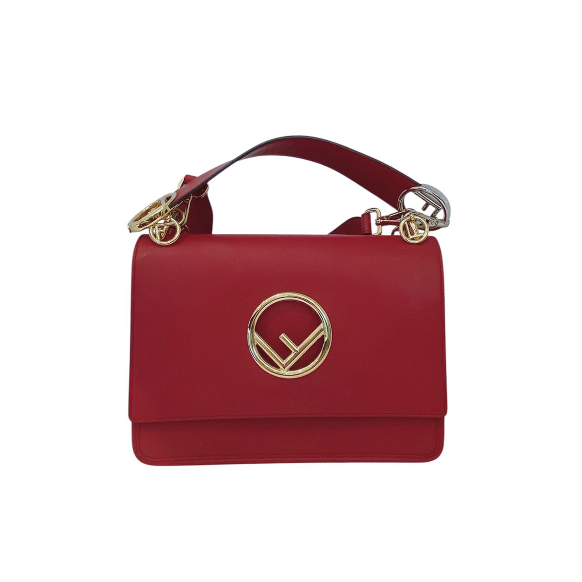 RED LEATHER MEDIUM KAN FLAP HANDLE BAG