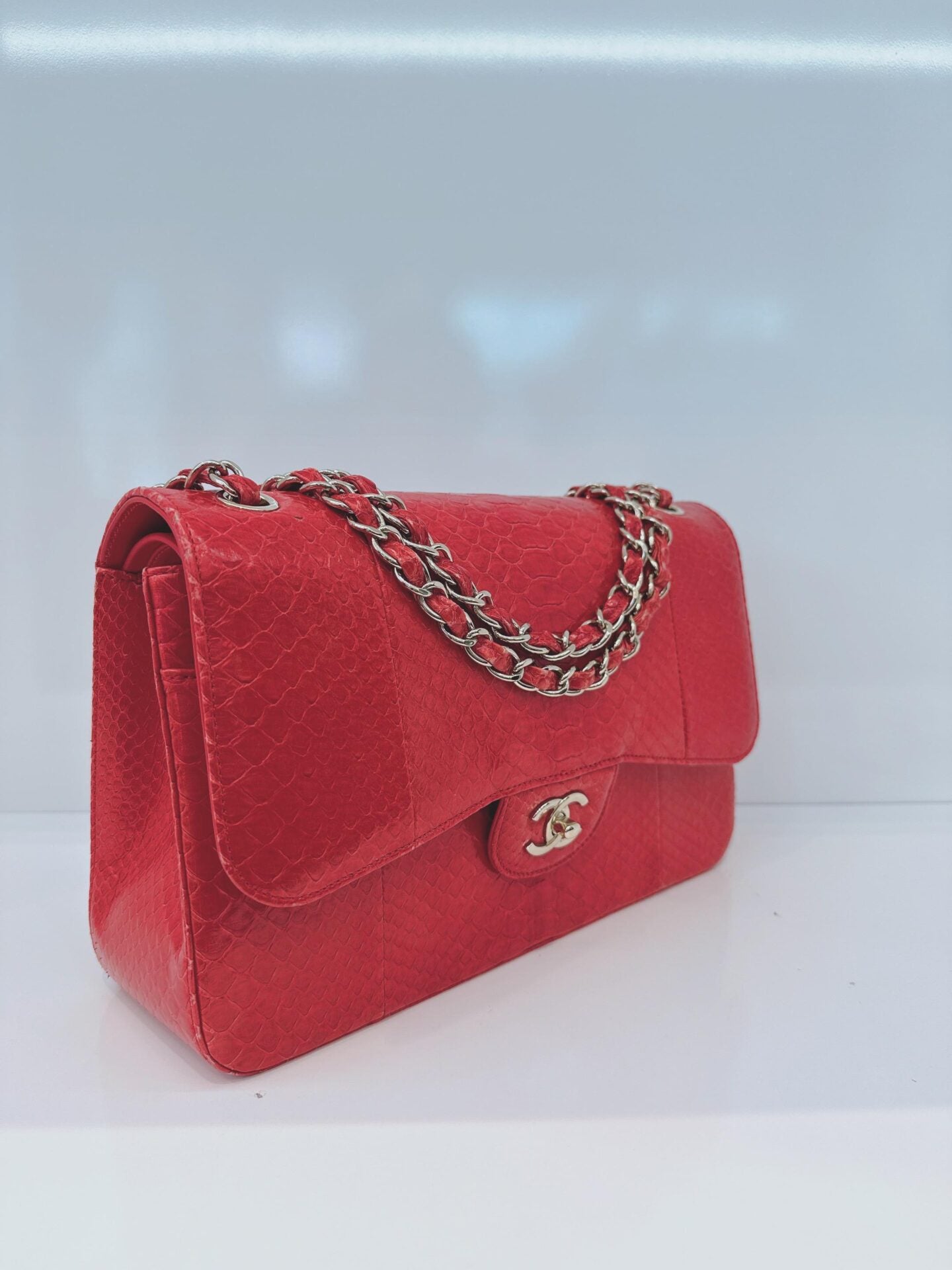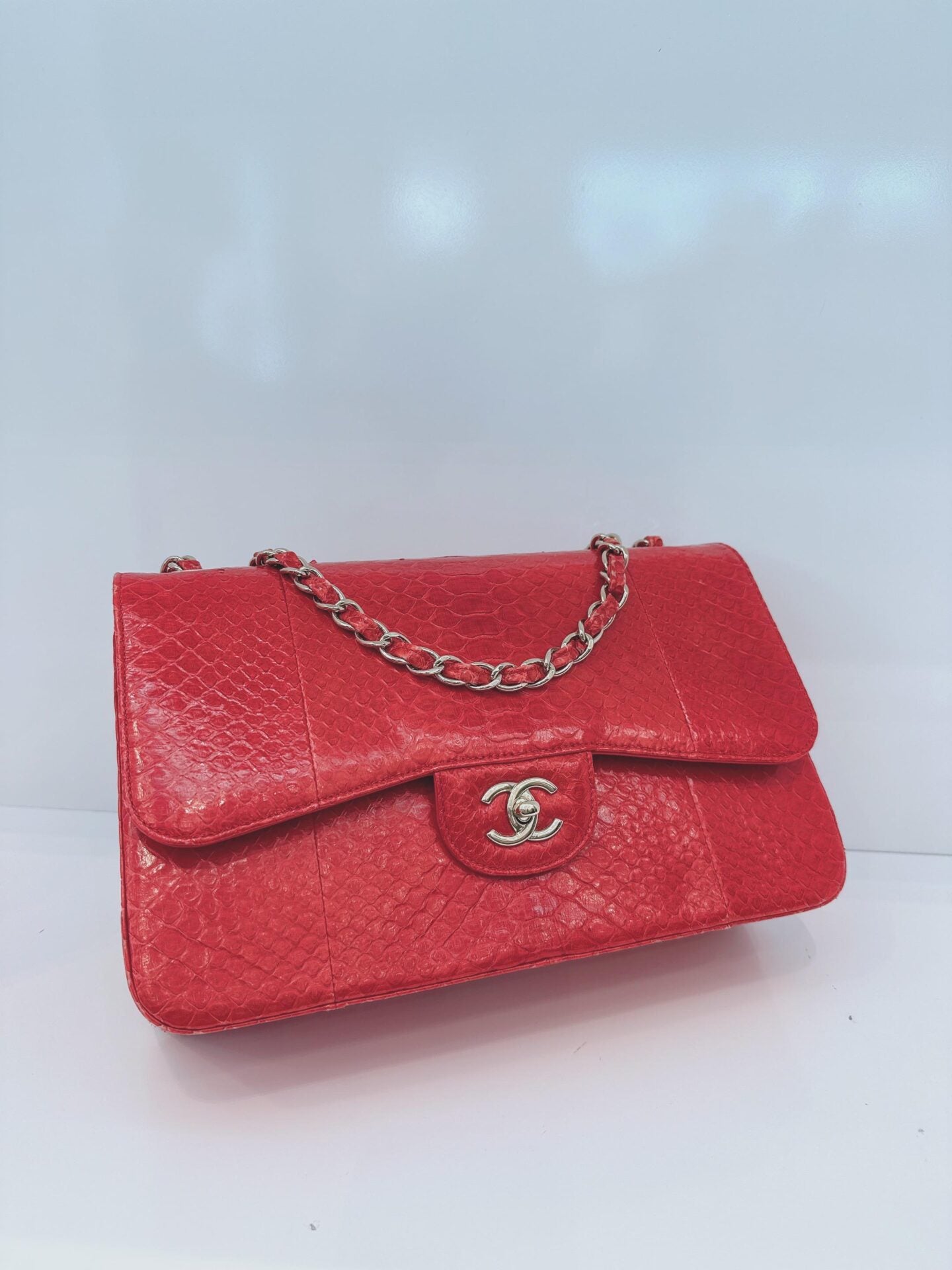 RED PYTHON JUMBO CLASSIC DOUBLE FLAP BAG