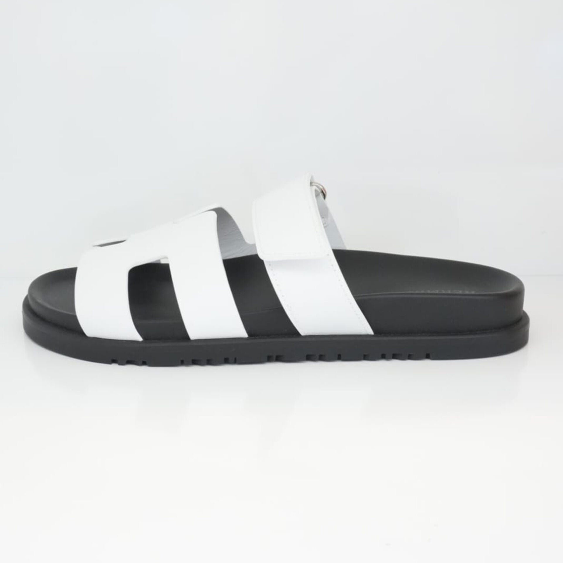 WHITE BLACK LEATHER CHYPRE SANDALS 38