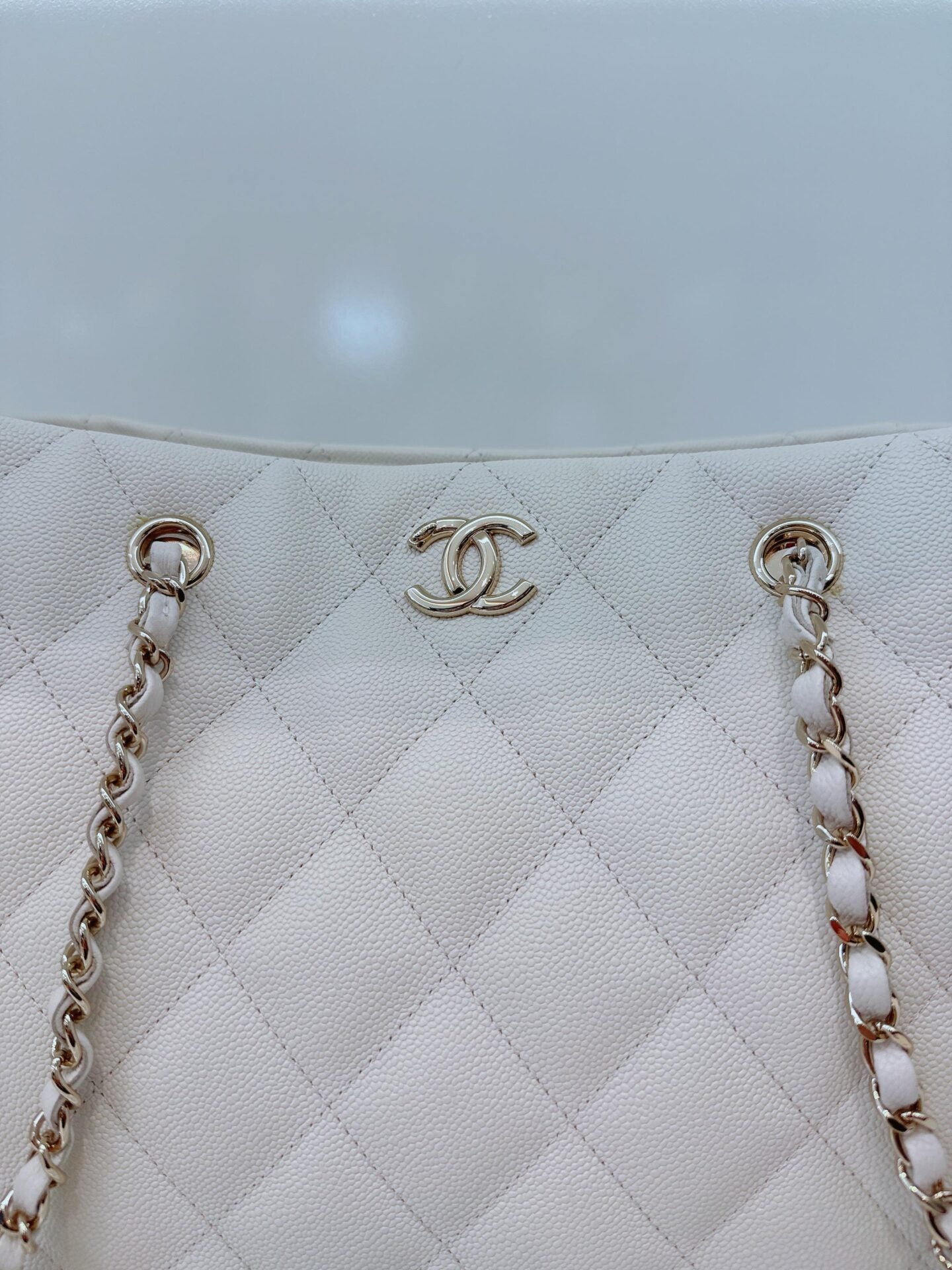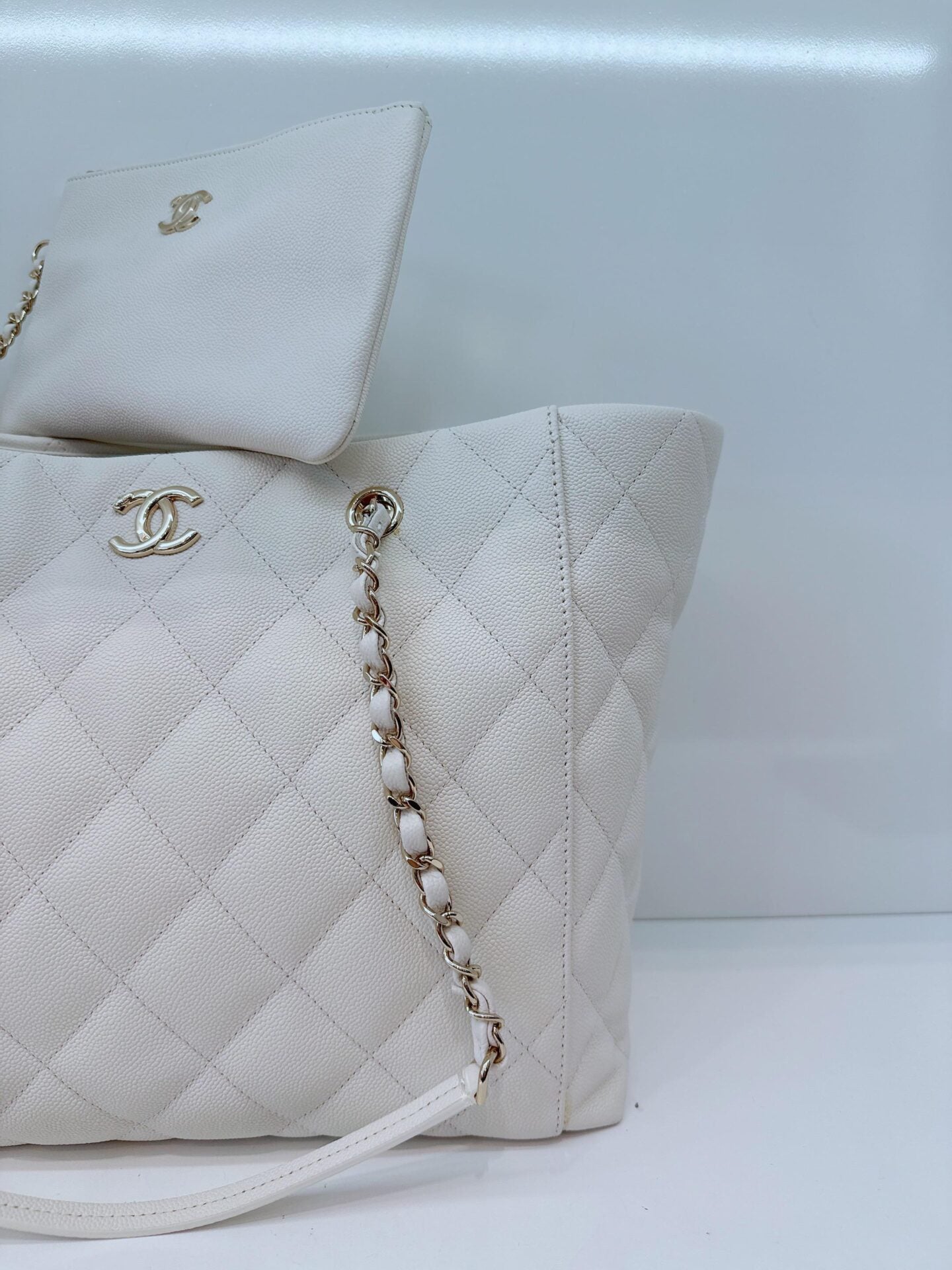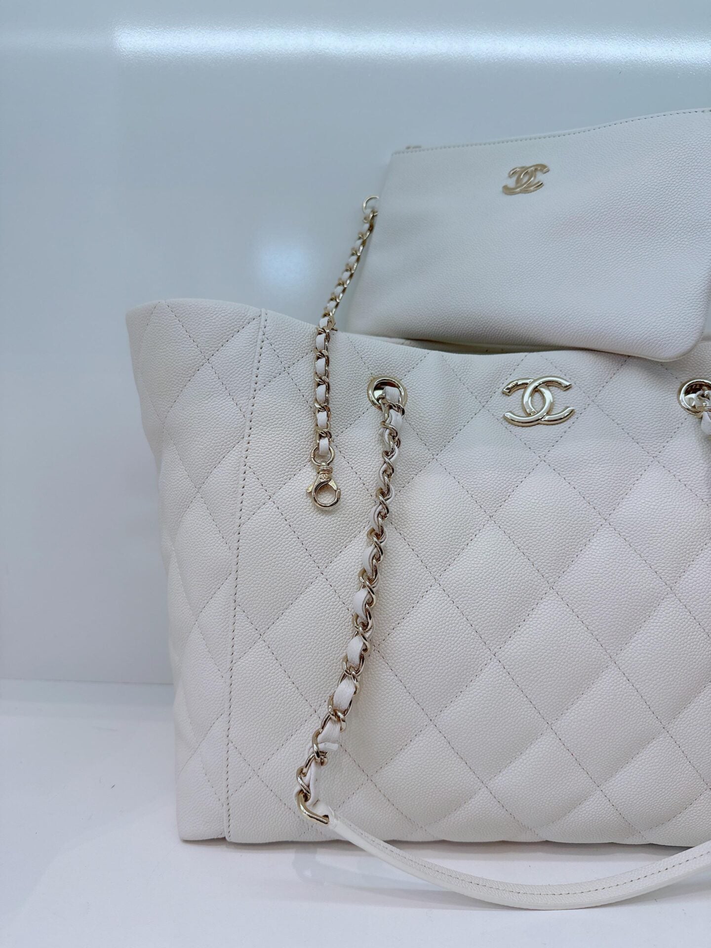 WHITE CAVIAR LEATHER 2023 LARGE SHOPPING TOTE BAG