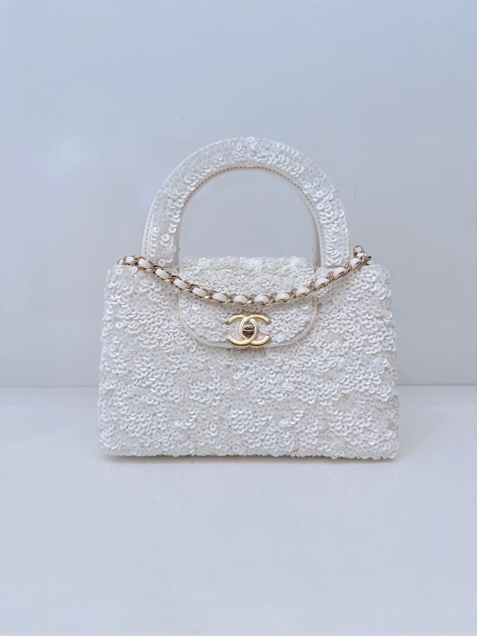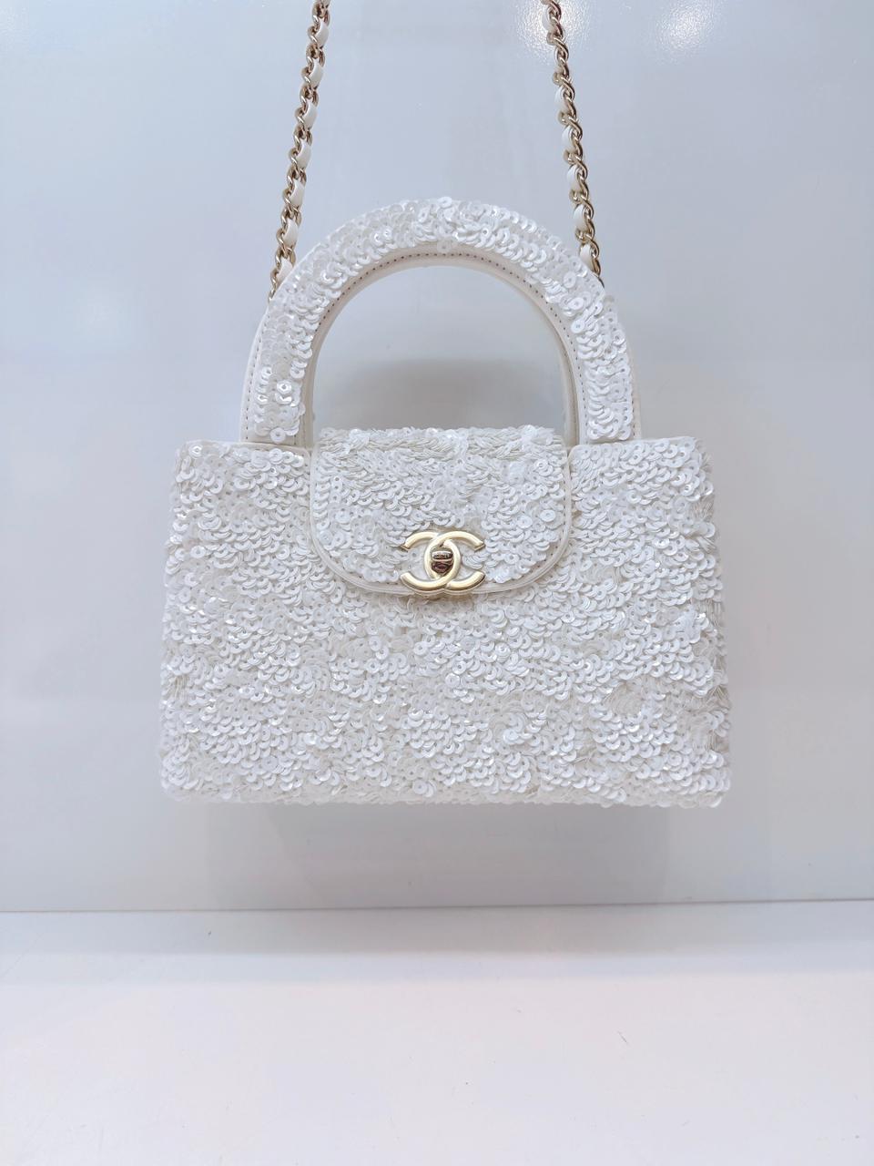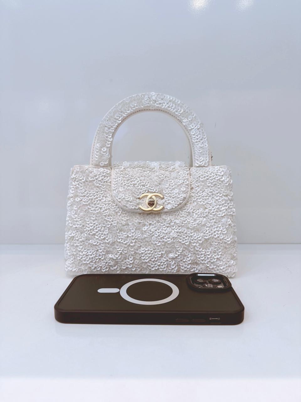 WHITE SEQUINS MINI KELLY SHOPPING BAG