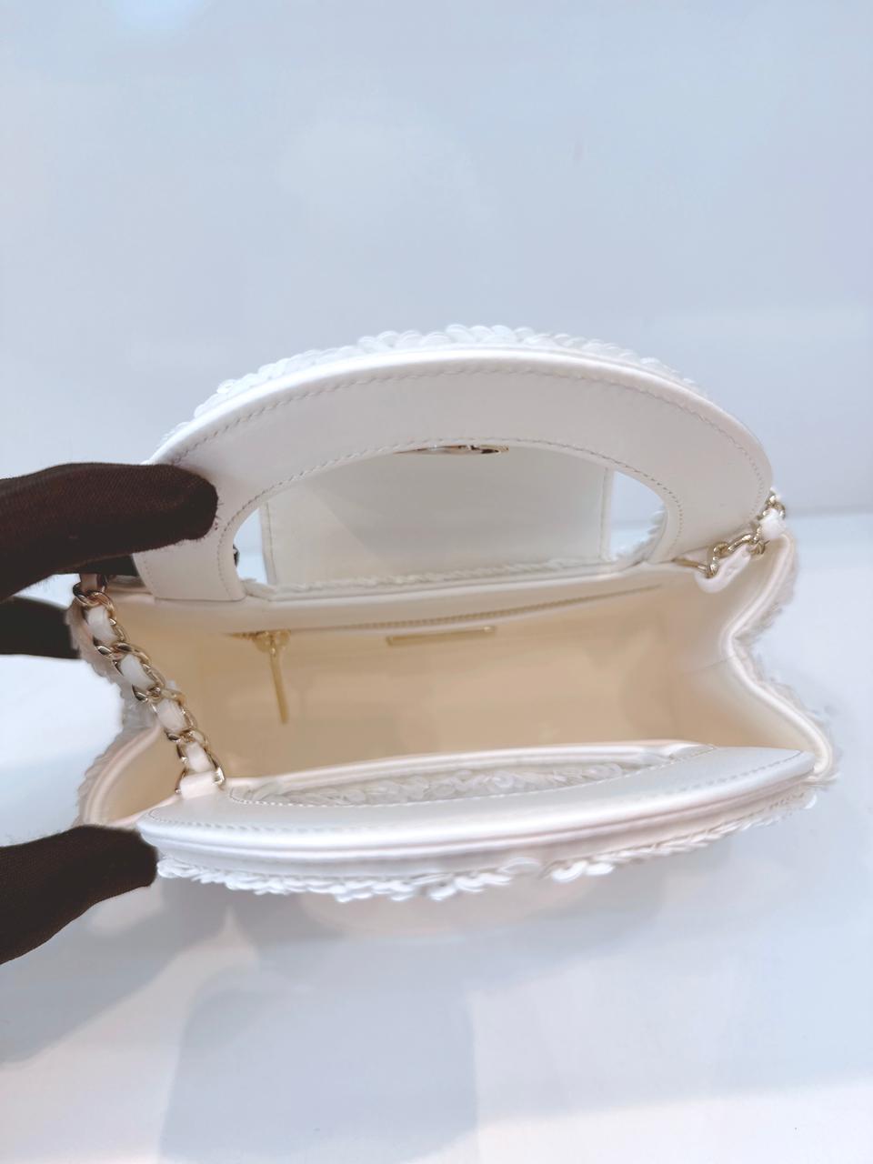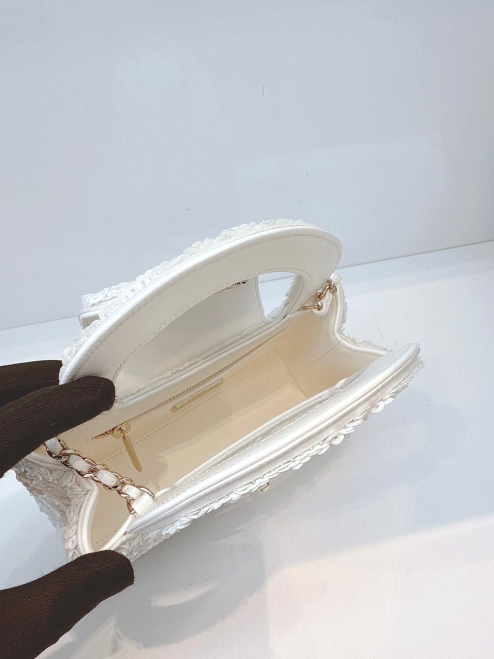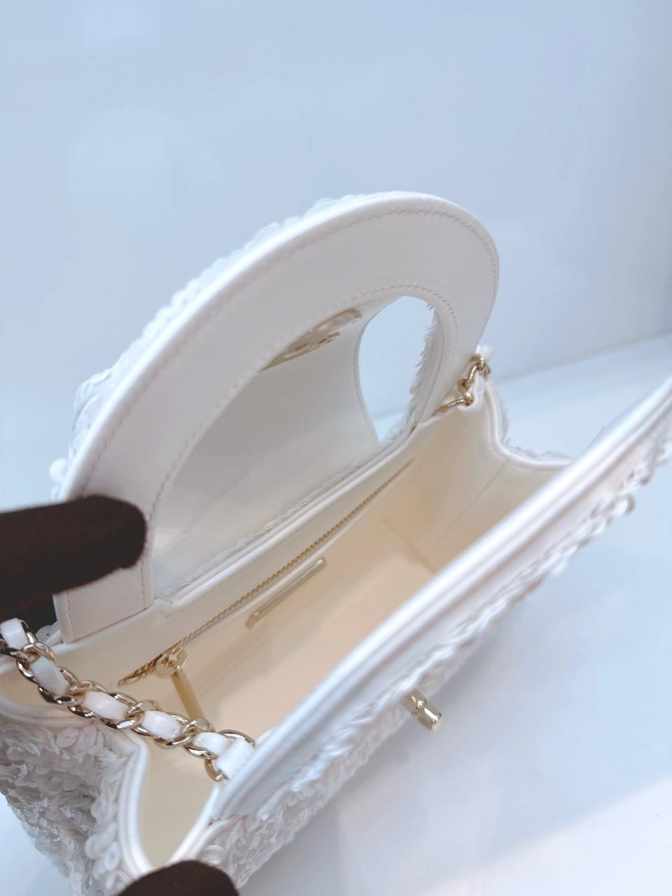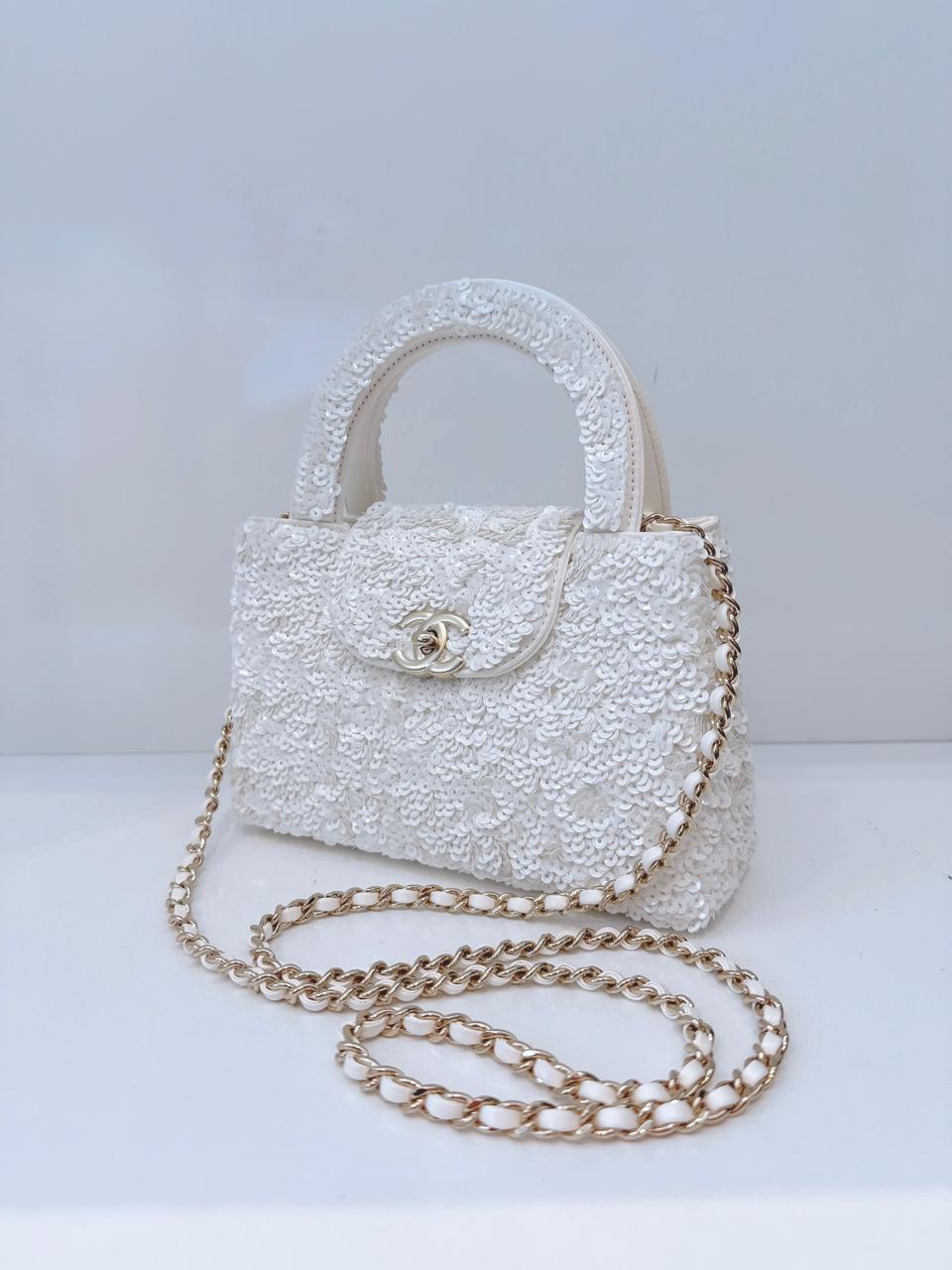 WHITE SEQUINS MINI KELLY SHOPPING BAG