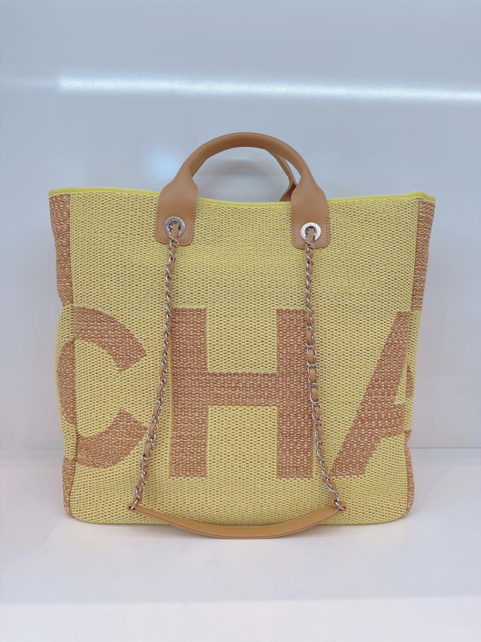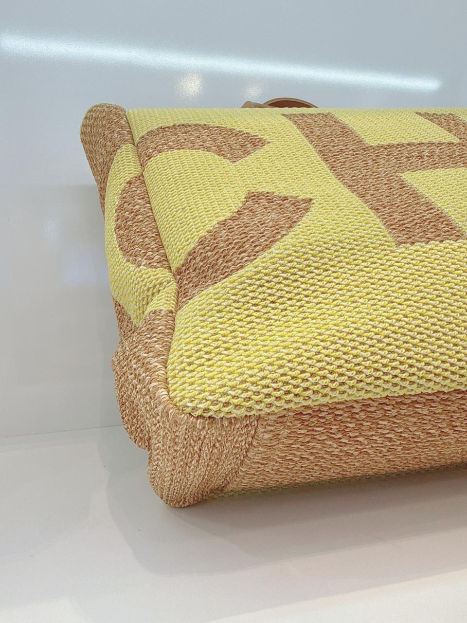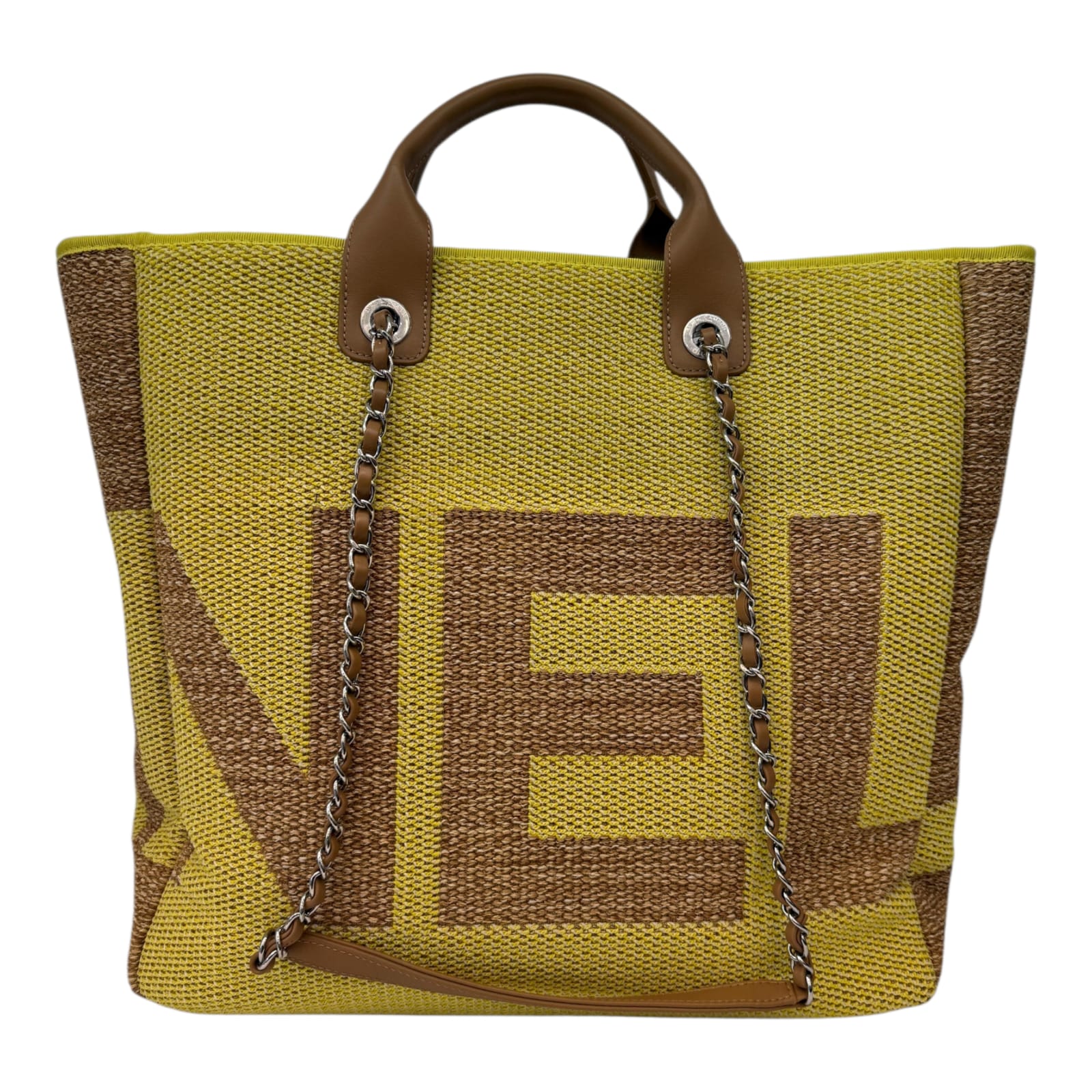 YELLOW TAN RAFFIA MAXI DEAUVILLE SHOPPING TOTE